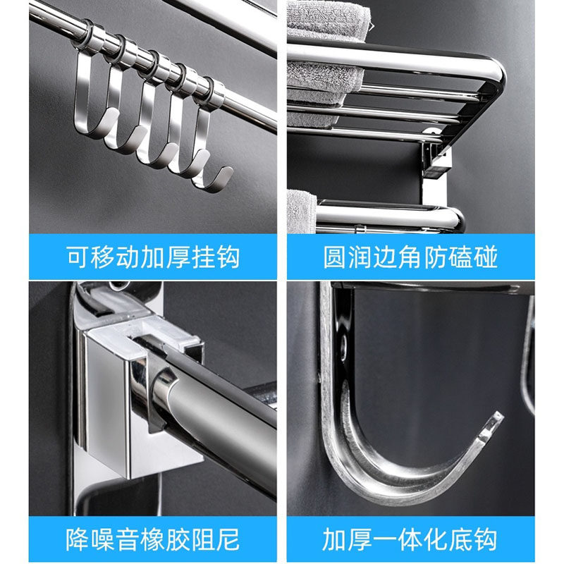 毛巾架卫生间免打孔浴室毛巾杆厕所浴巾挂304不锈钢壁挂毛巾卫浴