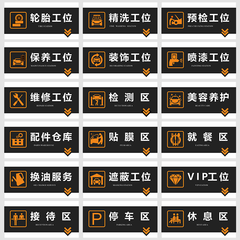 汽修厂分区吊牌4S店双面挂牌指示牌汽车维修保养精洗工位停车区检测区交车区标识牌标志牌定制