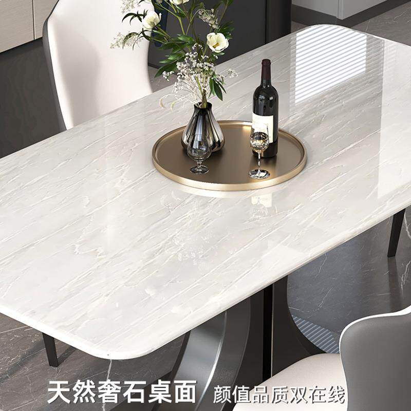 天然奢石卡里冰玉餐桌2024新款大理石高端长方形别墅家用吃饭桌