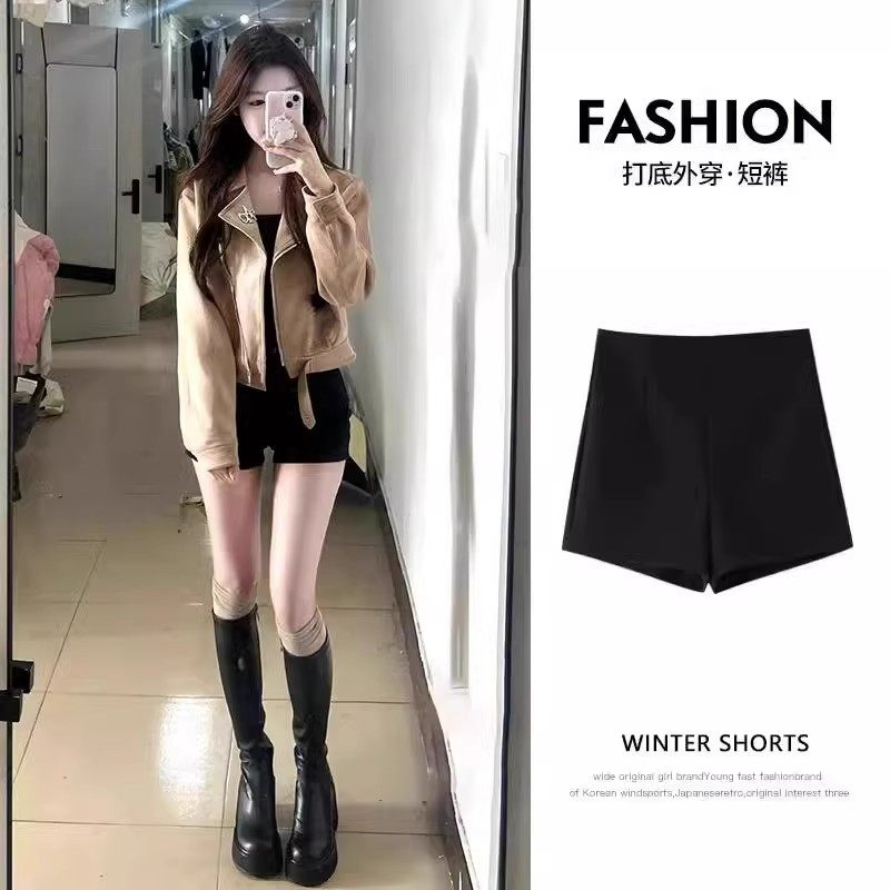 黑色短裤女秋冬新款2025高腰a字小个子紧身西装热裤外穿加厚靴裤