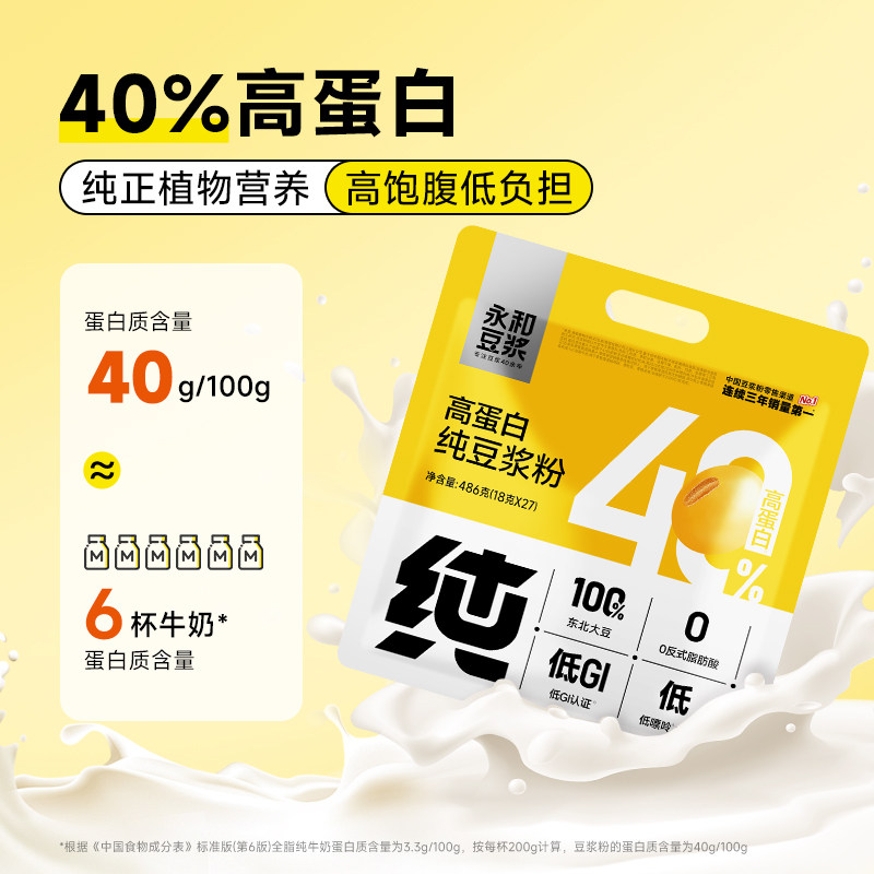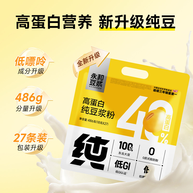 永和豆浆纯豆浆粉486g无添加糖高蛋白学生营养早餐冲饮袋装燕麦