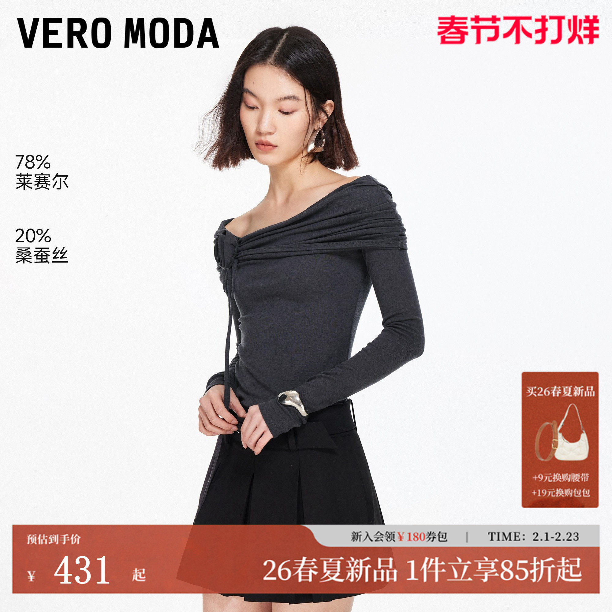 Vero ModaT恤2026春季新款含莱赛尔天丝羊毛t恤一字领326102013