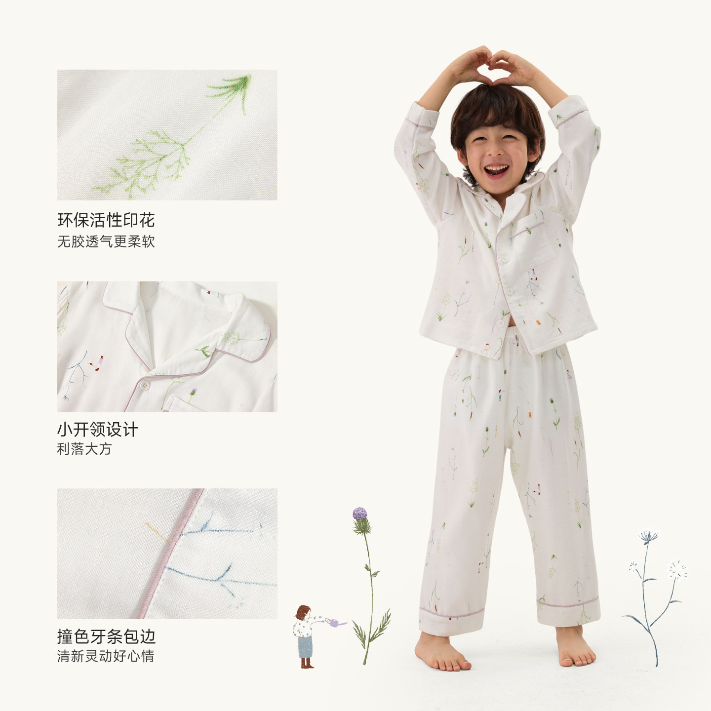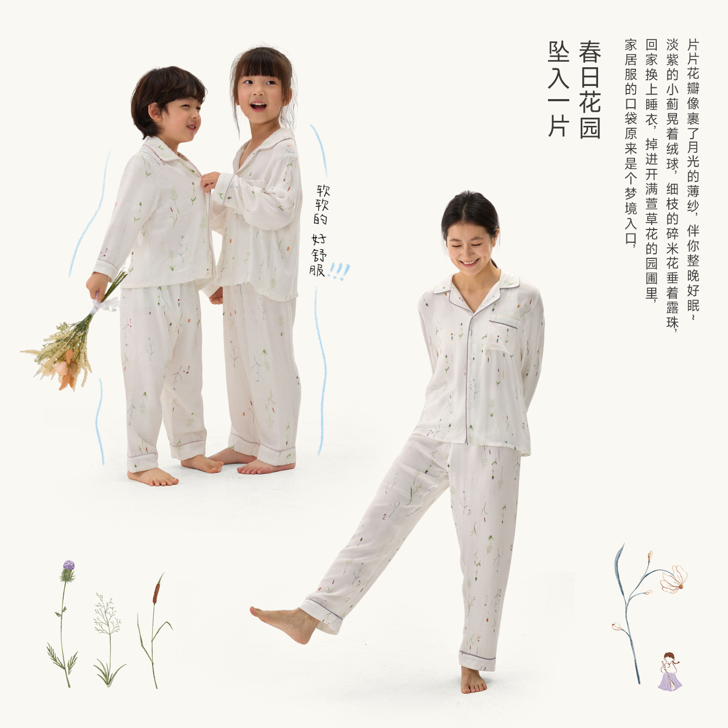 Q21浣纱儿童家居服长袖长裤睡衣套装竹纤维蚕丝纱布睡衣亲子款