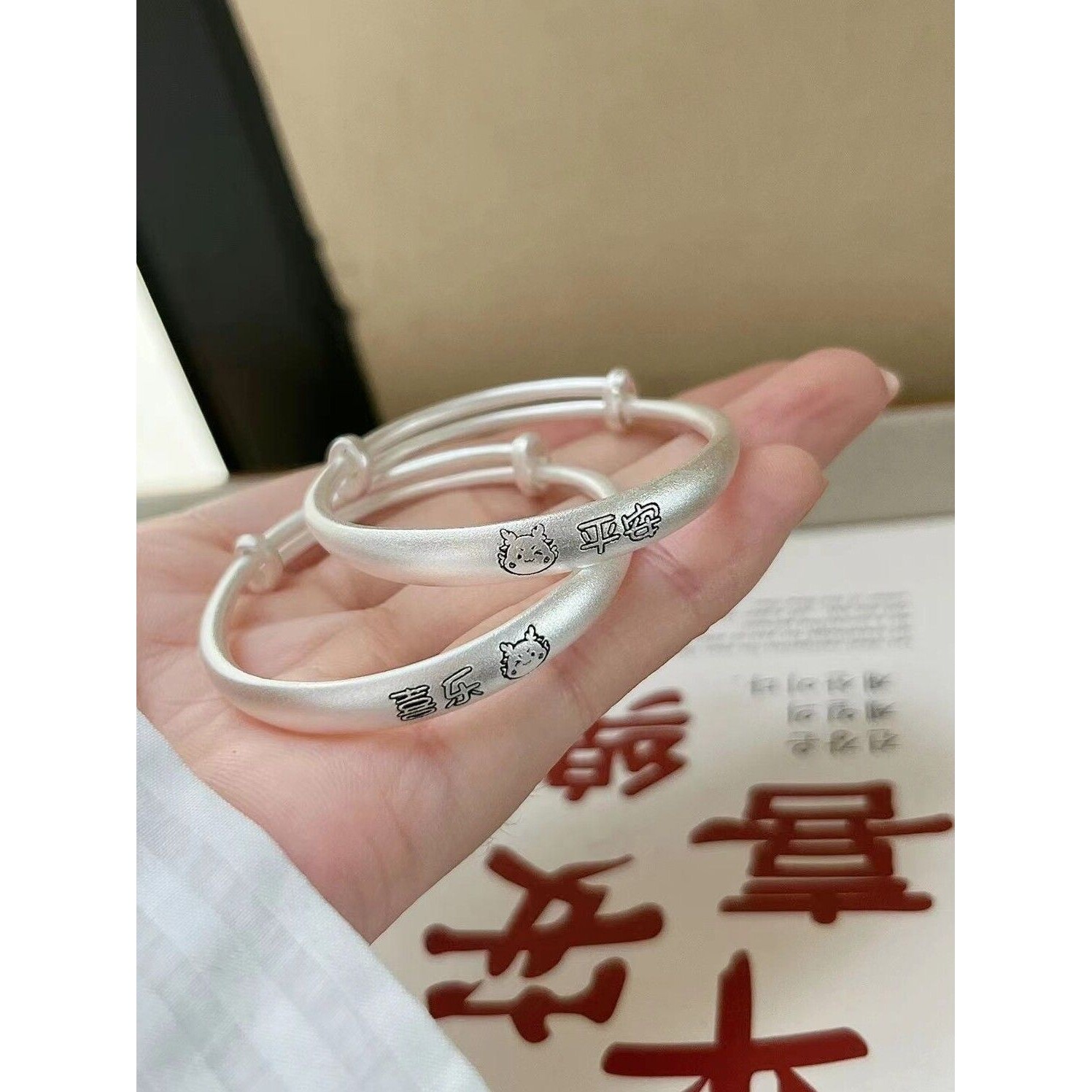 幂琳龙年宝宝银手镯婴儿s999纯银足银儿童银镯子新生儿满月周新款