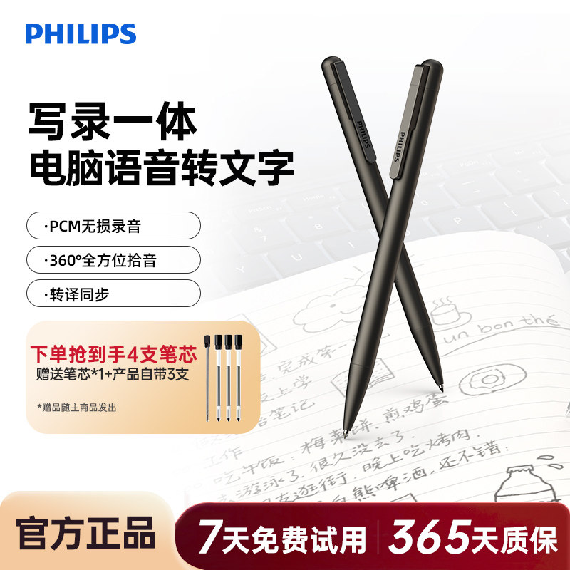 飞利浦笔形录音笔专业高清降噪会议学生上课录音机器设备小随身