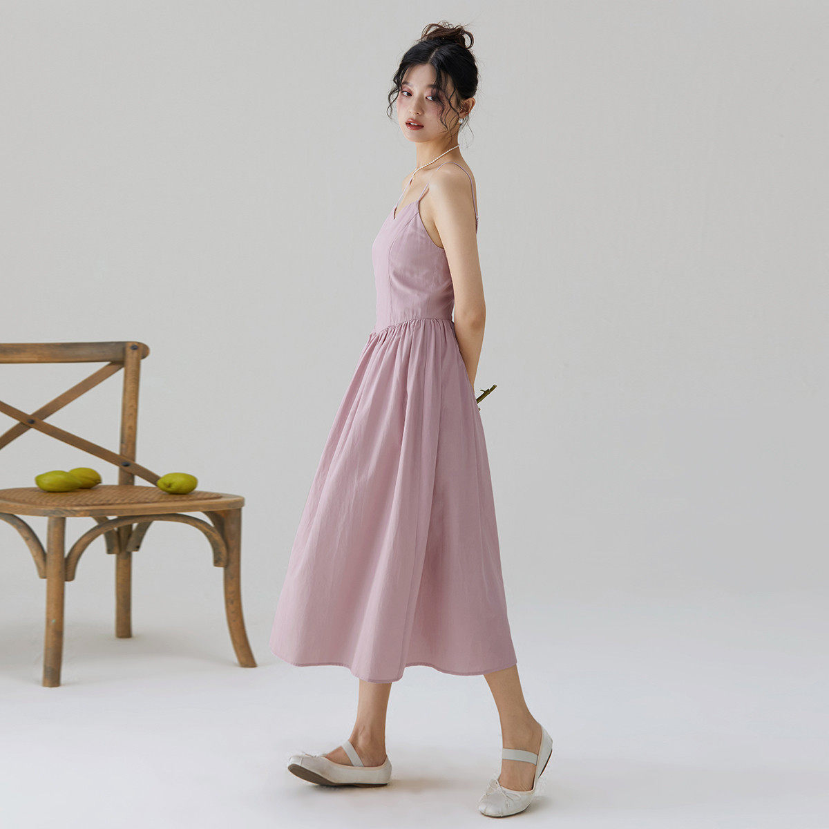 【papi同款】半练带胸垫吊带裙纯欲气质挂脖连衣裙黑裙子粉色长裙