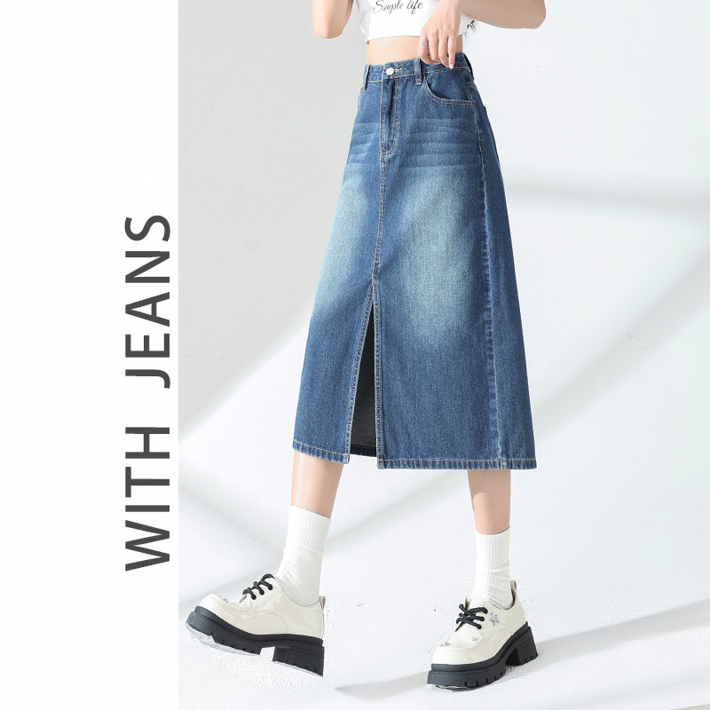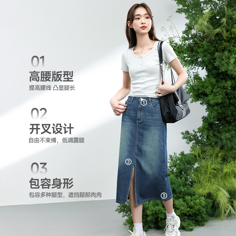 KHV真维斯黑色牛仔半身裙女2025年春秋新款高腰a字中长款包臀裙子