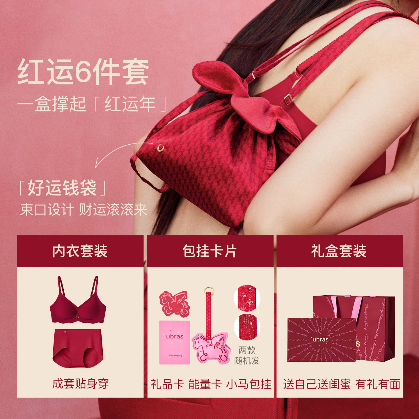 【 新品试用】ubras大红盒本命年无尺码文胸送礼红色内衣套装女