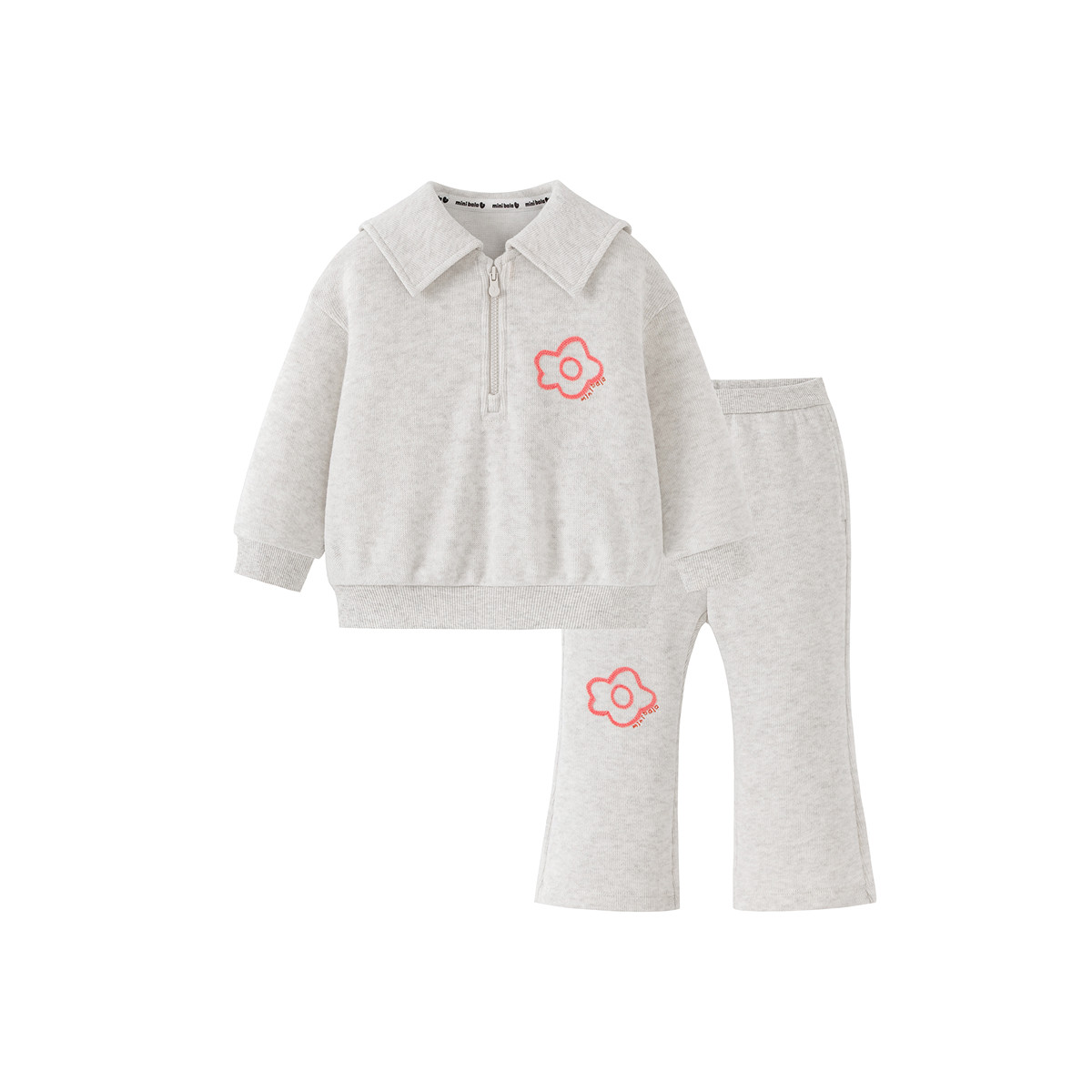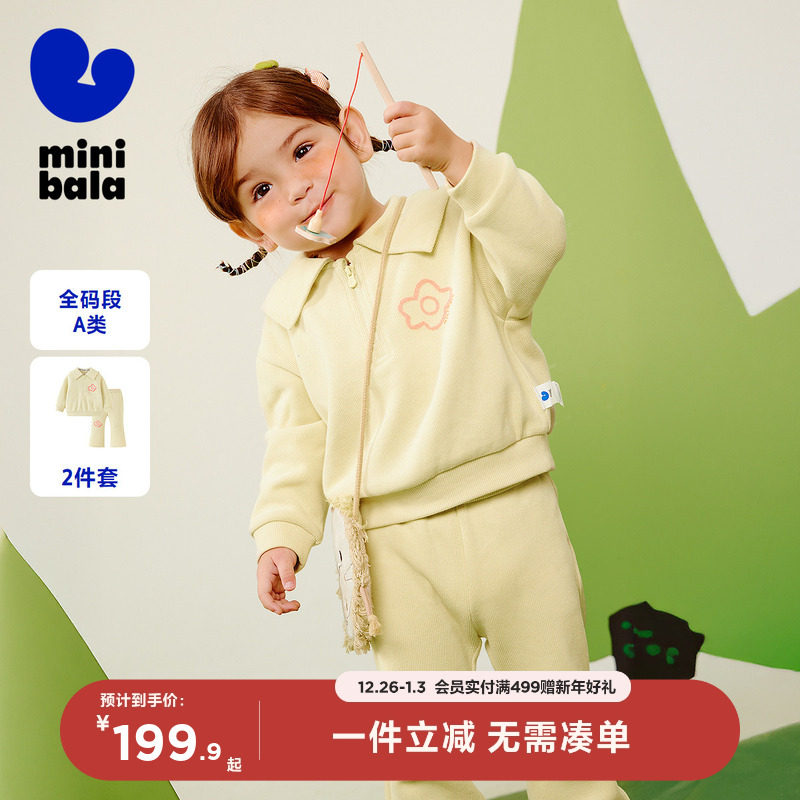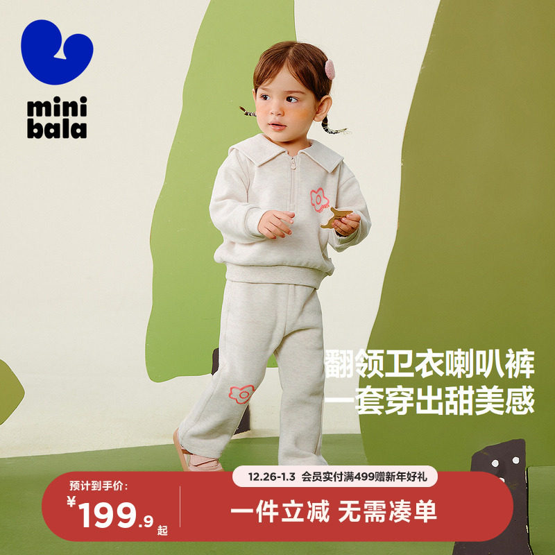 迷你巴拉巴拉女童宝宝学院风长袖翻领套装喇叭裤两件套2025秋新品
