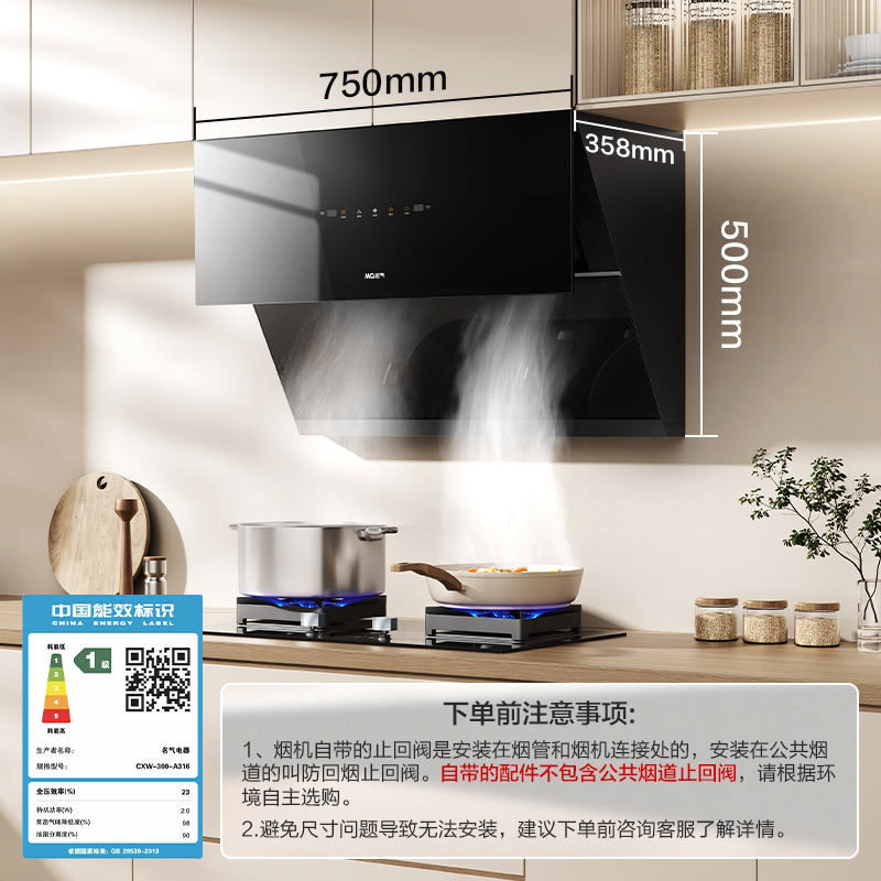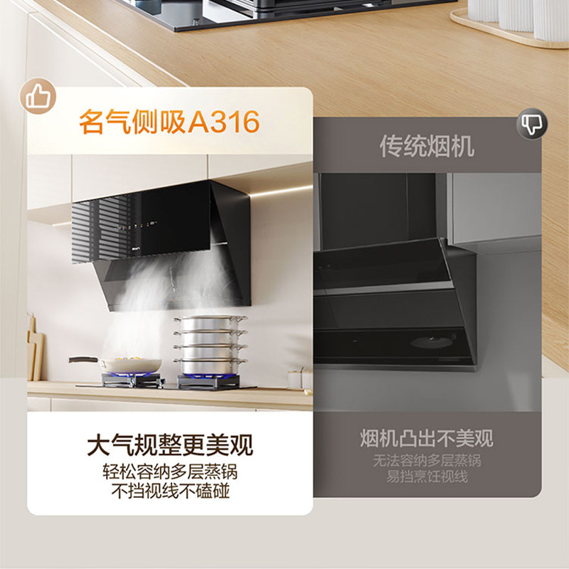 【名气】 A316侧吸大吸力家用厨房油烟机抽油烟机