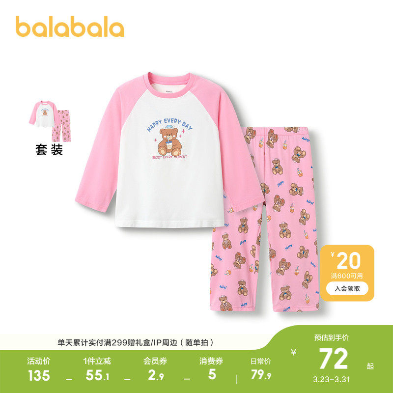 巴拉巴拉女童睡衣套装秋季小童家居服甜美印花柔软舒适亲肤空调服