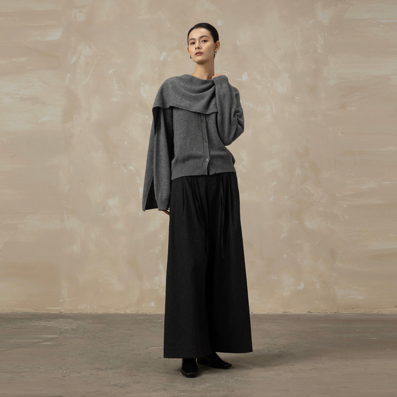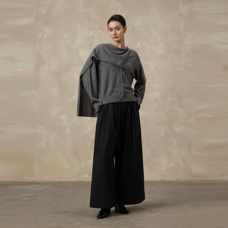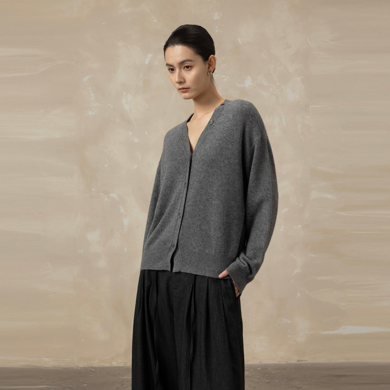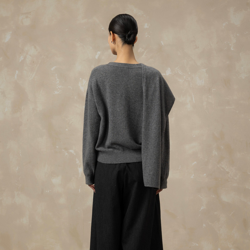 AIRIQI商场同款26春新款休闲落肩可拆卸羊毛针织开衫AH61KS059