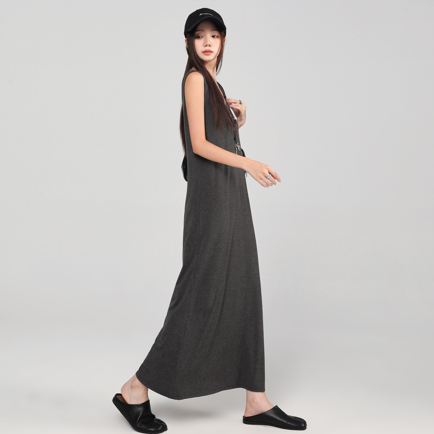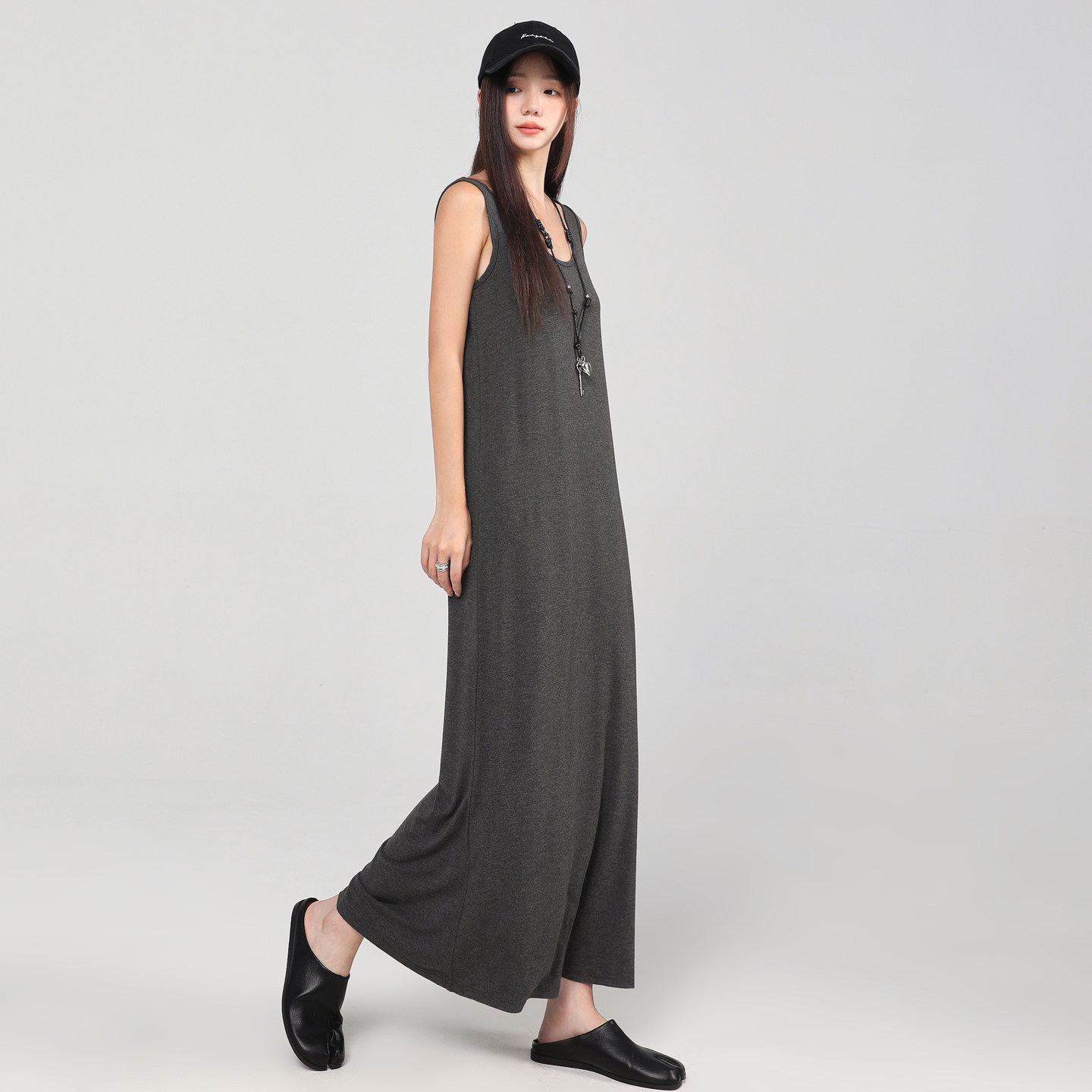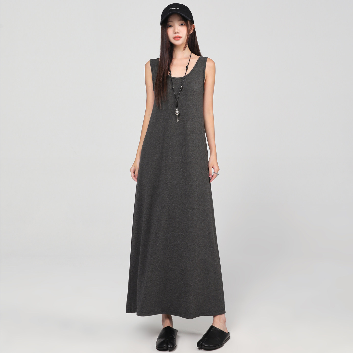 莫代尔长裙A字遮肚吊带裙外穿无袖背心大摆裙宽松打底连衣裙女装