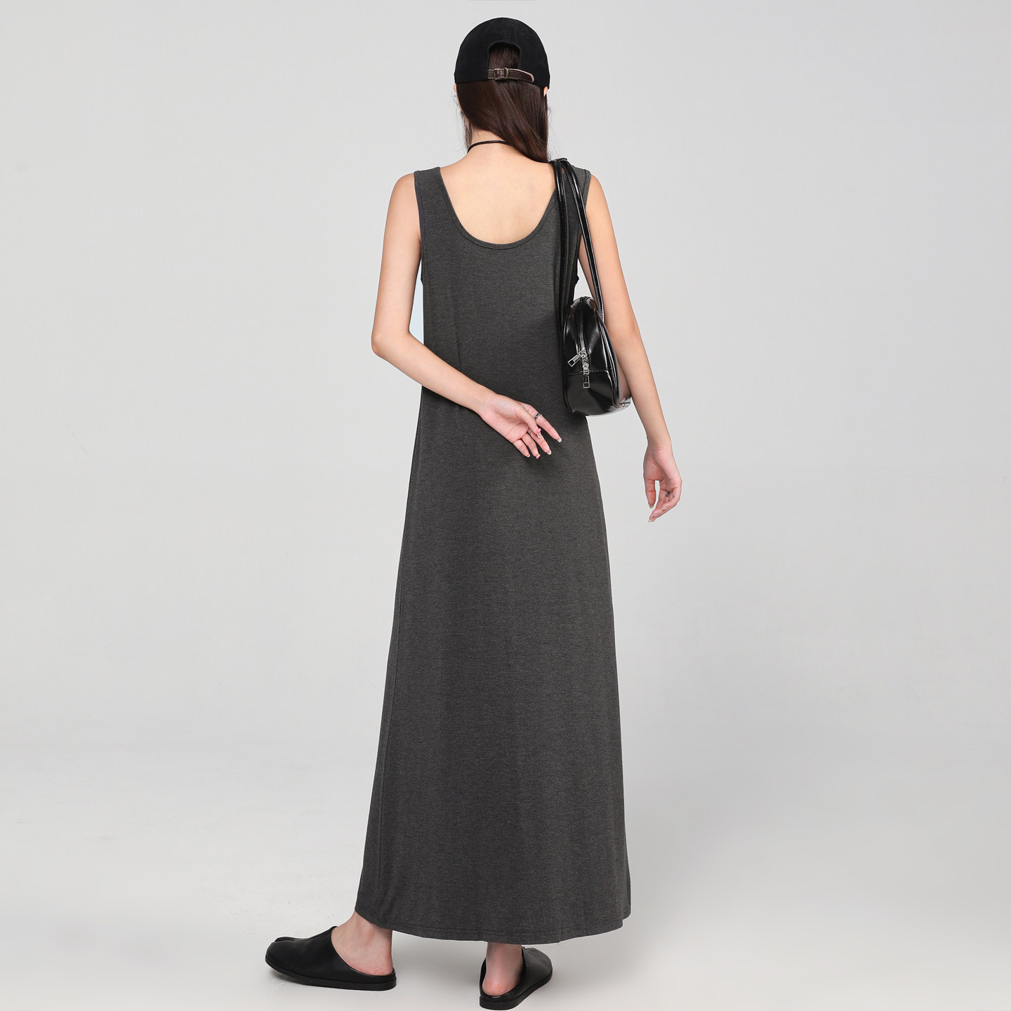 QY2 2026年春夏新款女装黑色无袖简约风格宽松版型连衣裙