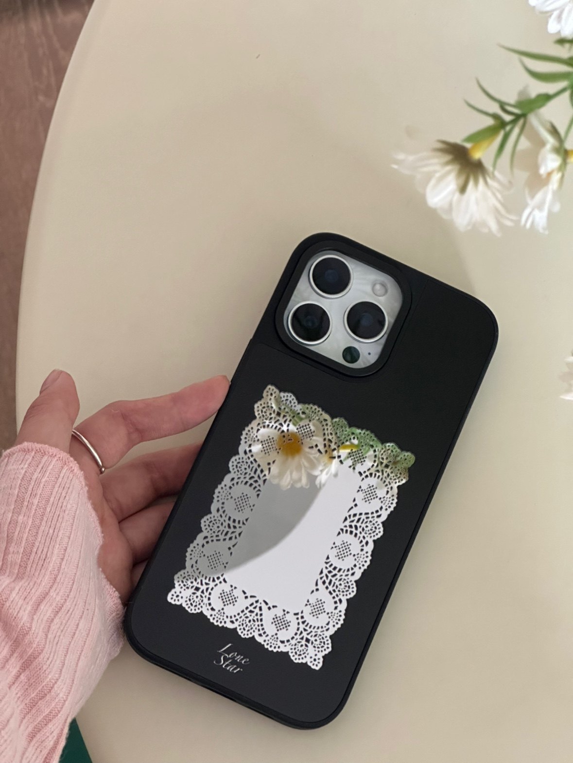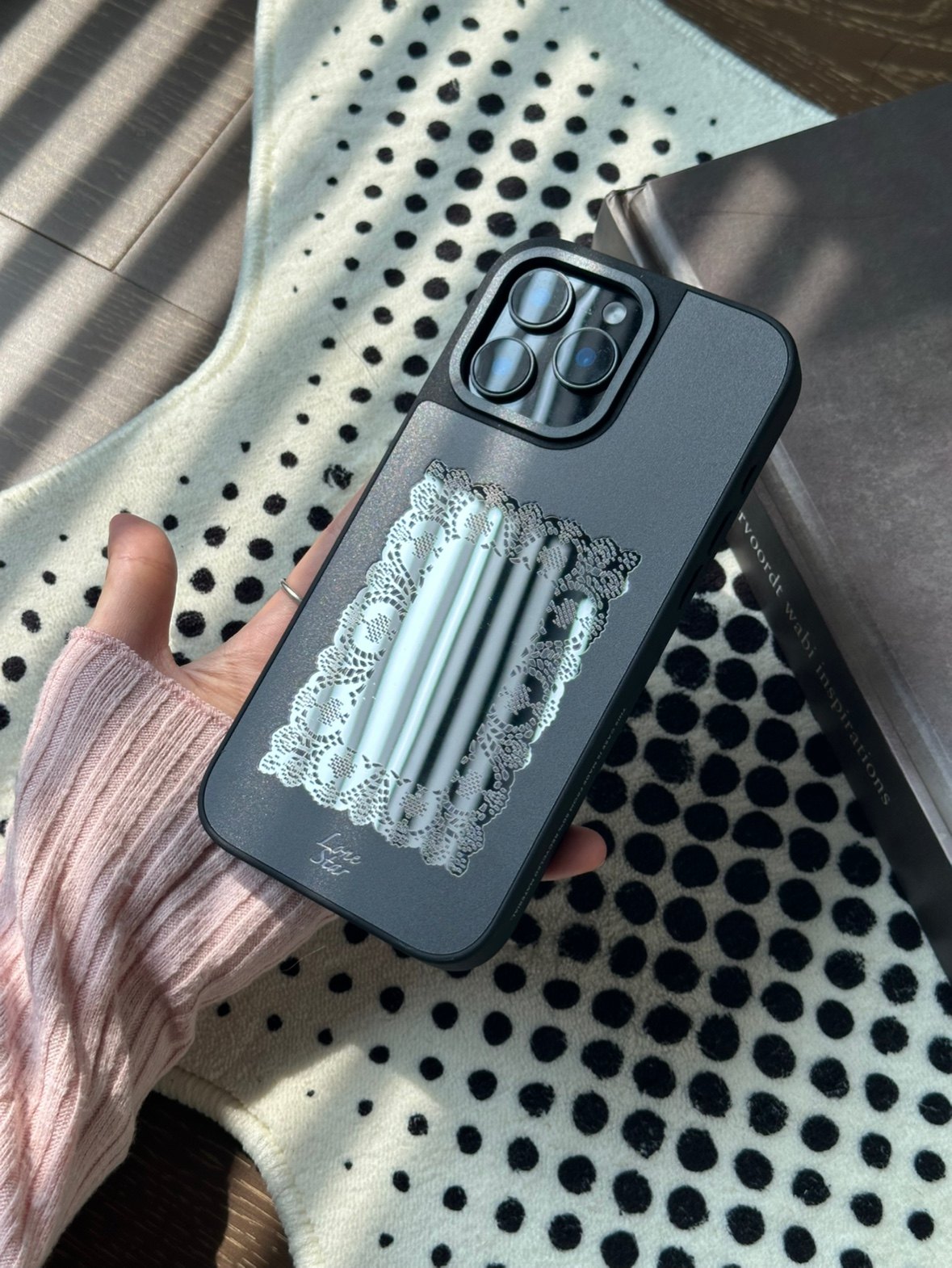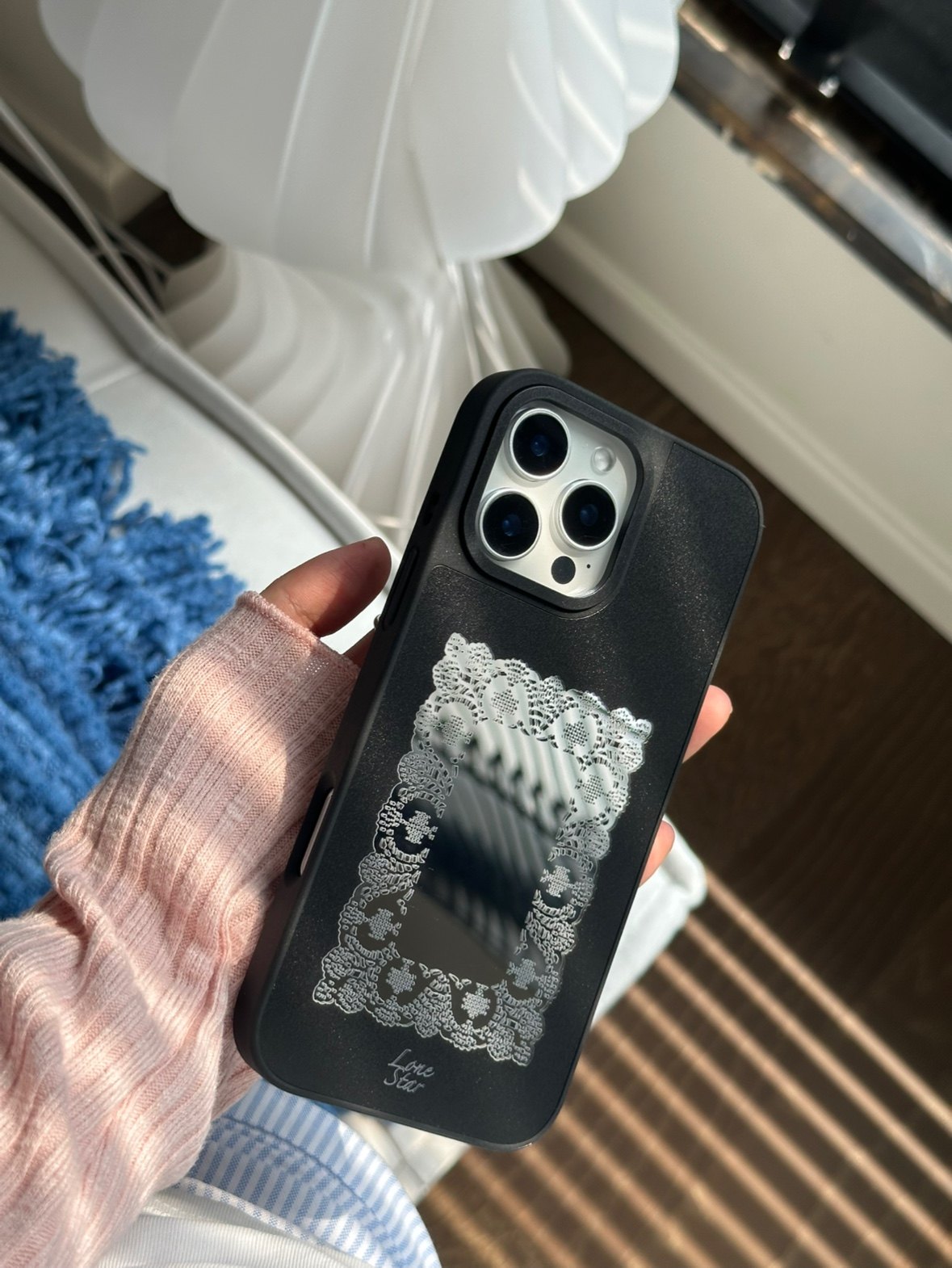 LoneStar原创蕾丝餐巾复古百搭简约印花镜面黑边壳适用苹果17promax全包大孔手机壳