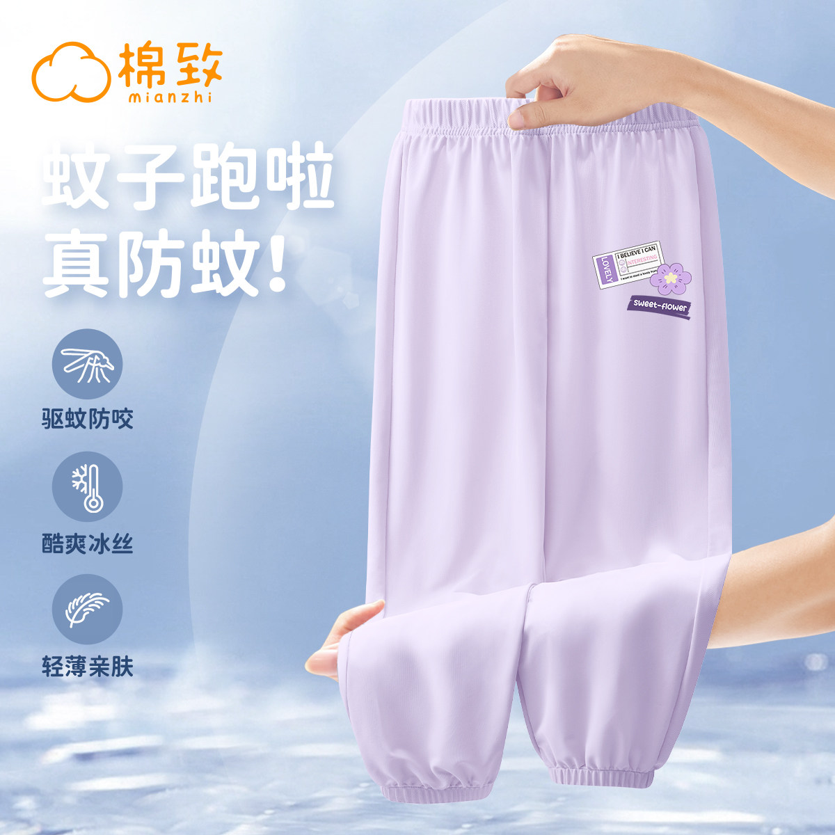 棉致防蚊裤女童裤子春秋薄款2025新款夏季冰丝女孩长裤儿童运动裤