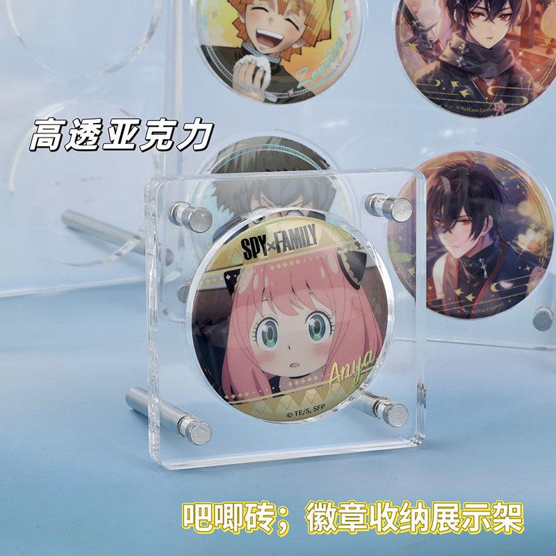 小型吧唧展示架亚克力吧唧高清卡砖谷子托动漫周边收纳盒框高透明