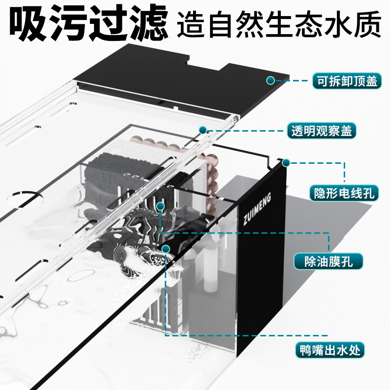 鱼缸桌面摆件溪流造景全套循环过滤免换水小型生态缸客厅雨林侧滤