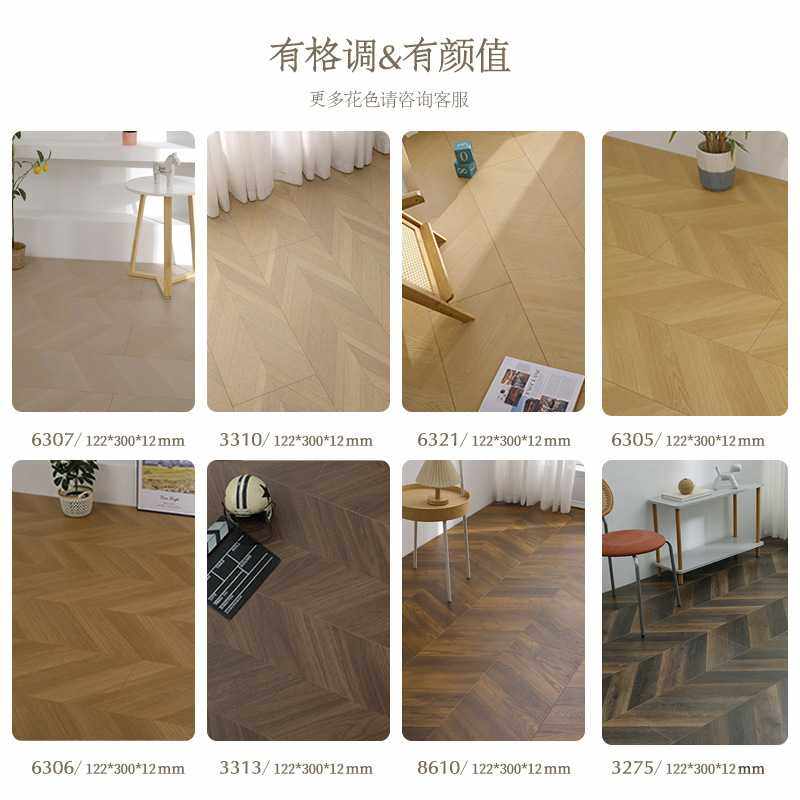 强化复合木地板鱼骨拼人字纹复古工装拼花轻奢服装店防水耐磨厂家