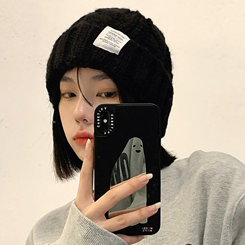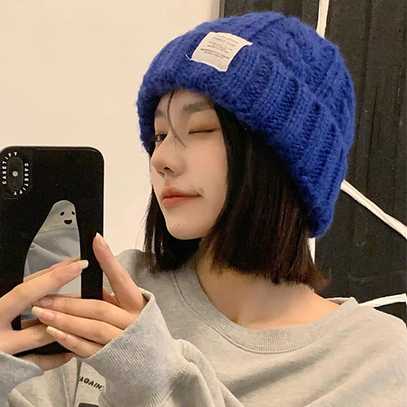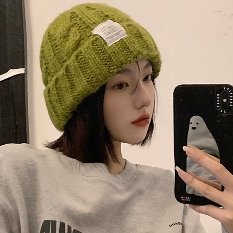 大头围毛线帽子女款秋冬季保暖冷帽显脸小针织护耳帽红色紫色绿色