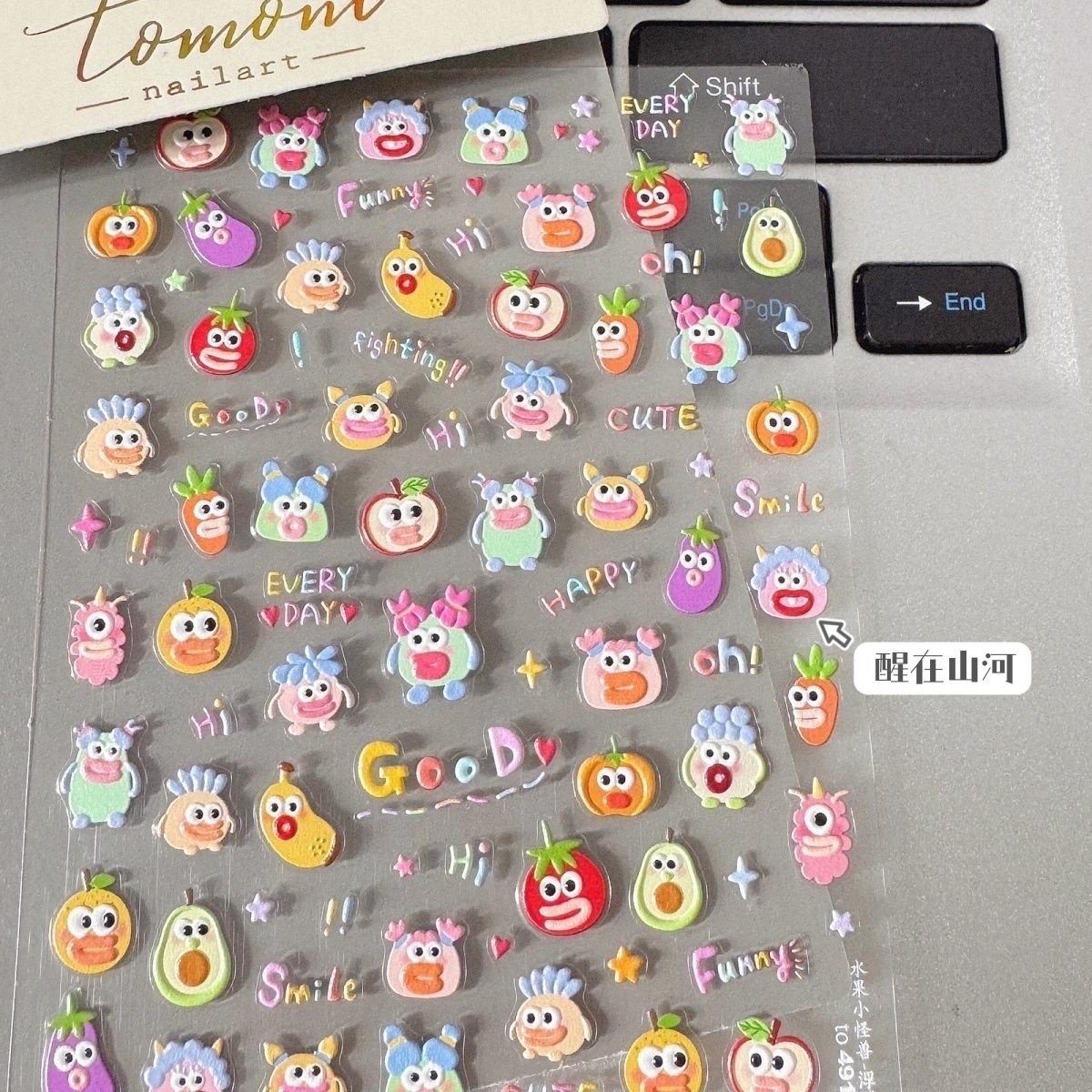 新款可爱胡萝卜小怪物浮雕立体贴纸水果大嘴怪diy笔杆水杯手机壳