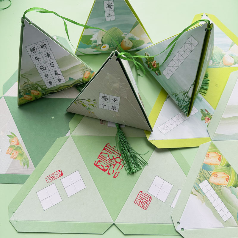 创意高级端午节立体粽子书法折纸儿童手工DIY自制材料包专用纸幼儿园亲子活动异行彩色卡纸安康祝福挂件礼物
