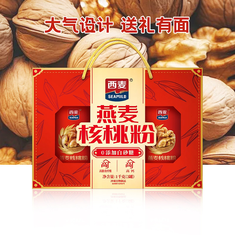 西麦燕麦核桃粉1000g礼盒健康早餐代餐冲泡送礼长辈中老年营养品