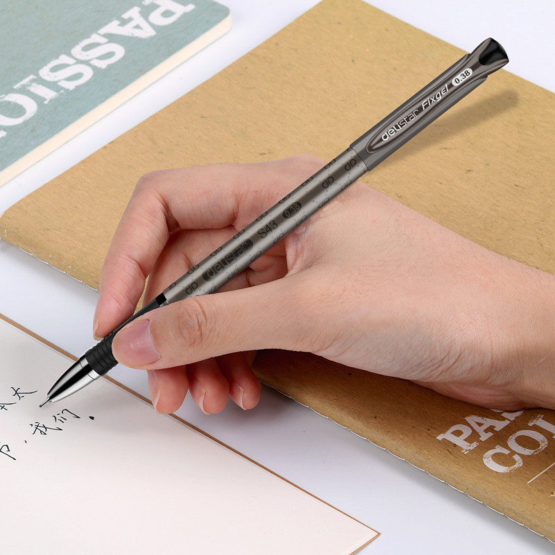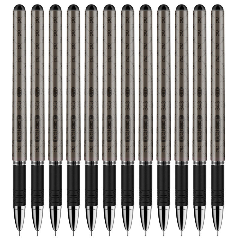 得力财务记账笔0.38全针管特中性笔学生考试办公会计支票笔细笔头