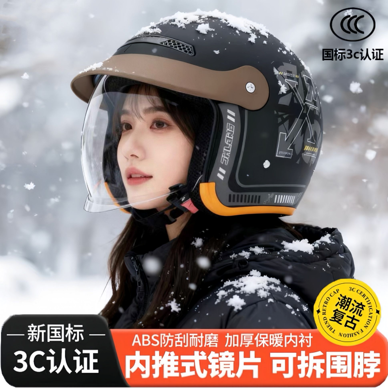 3C认证电动车头盔女士冬季保暖摩托电瓶车复古四季通用冬天安全帽