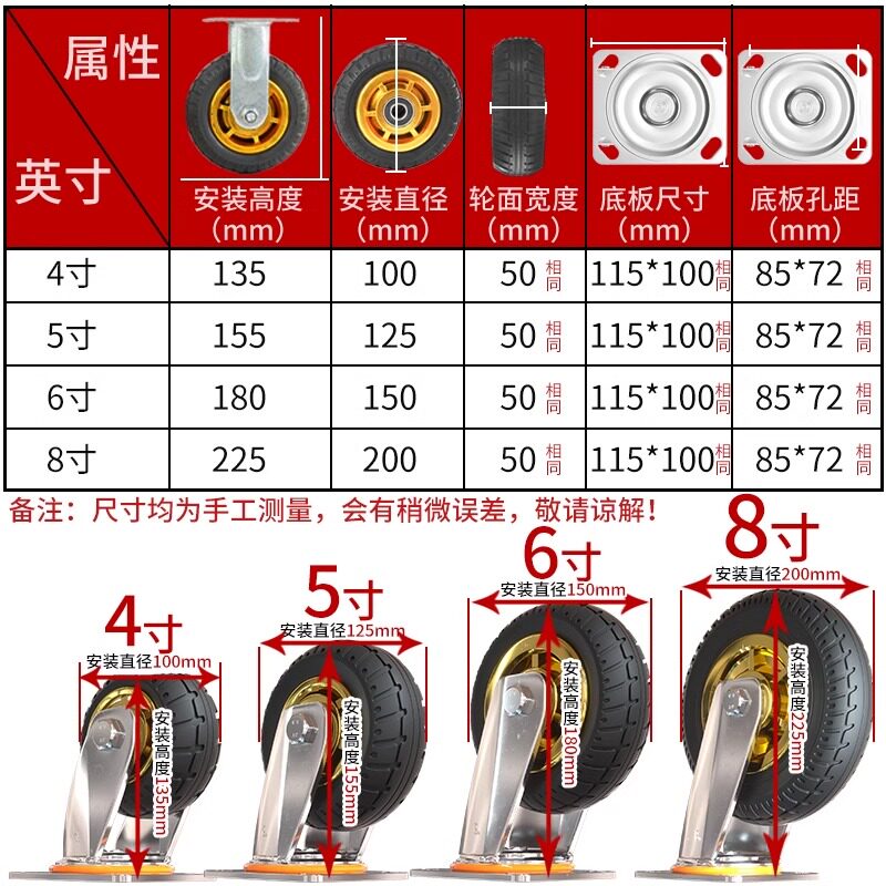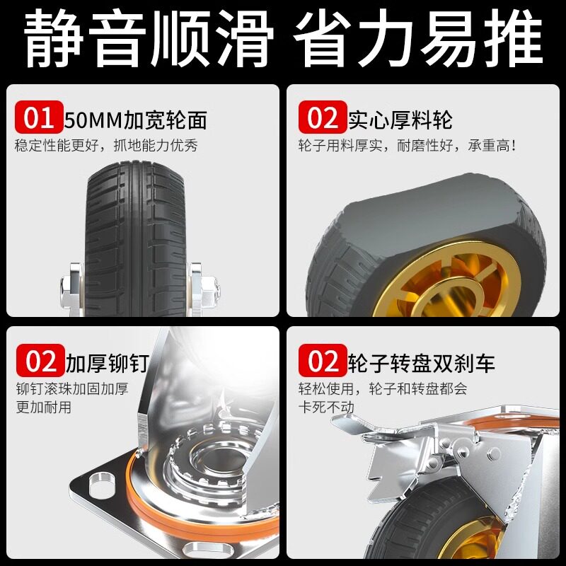 万向轮轮子大全带刹车重型静音橡胶脚轮平板手推车承重轮定向车轮