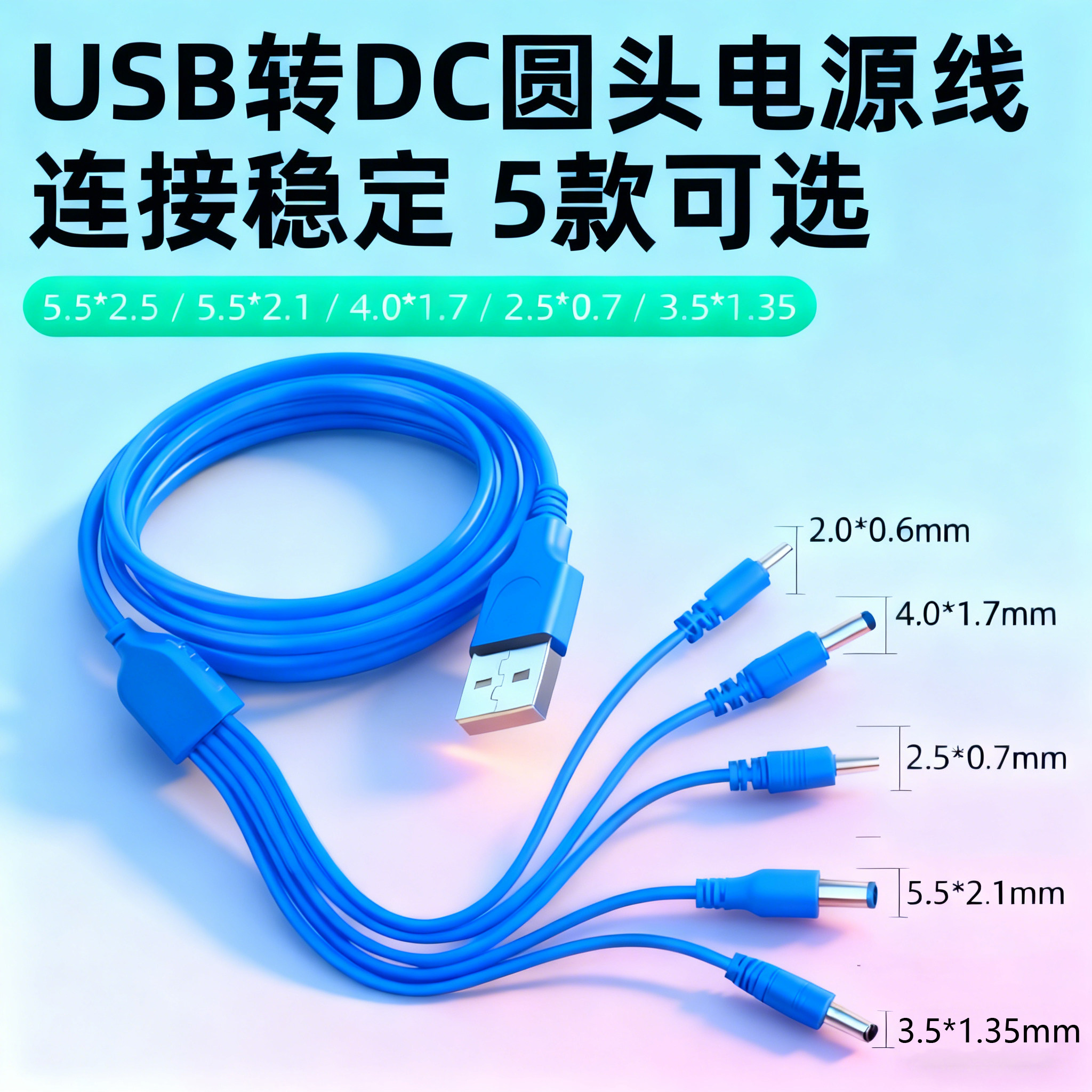 2.5/3.5/4.0/5.5mm圆头usb转DC5V电源数据线洗脸仪圆孔充电线器供电台灯路由器蓝牙音响小风扇玩具洁面通用