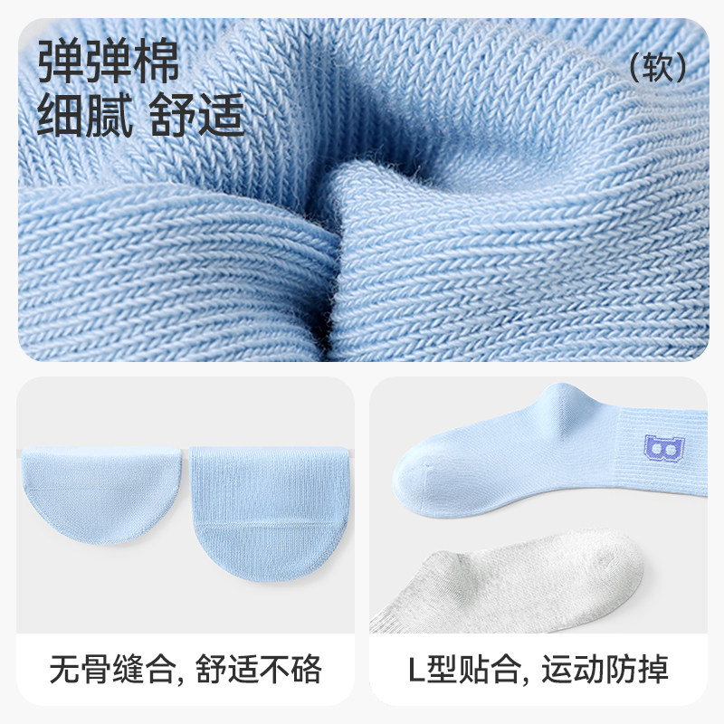 久岁伴男童袜子春秋新款运动中筒袜中大童宝宝抑菌四季透气袜5双
