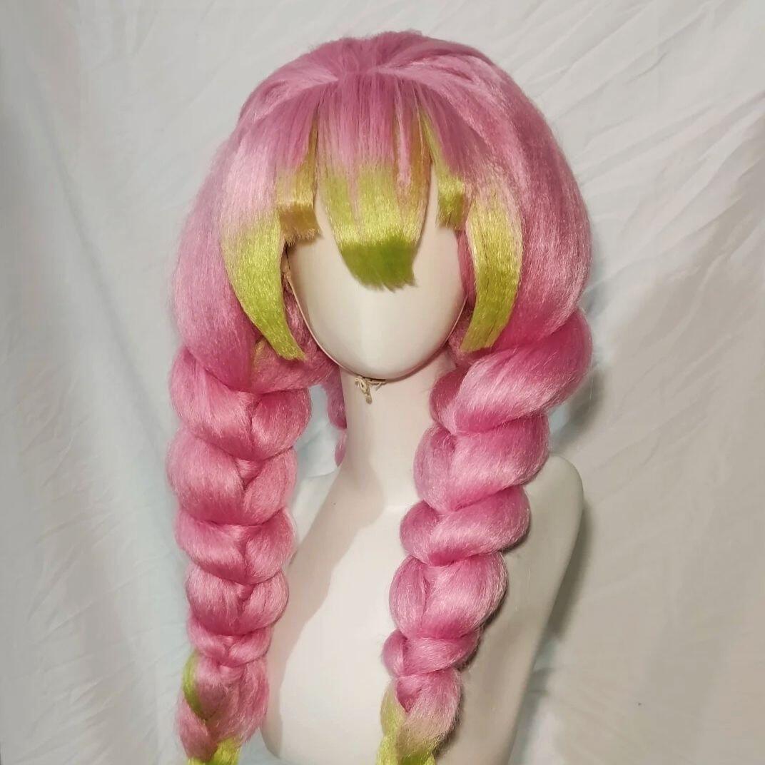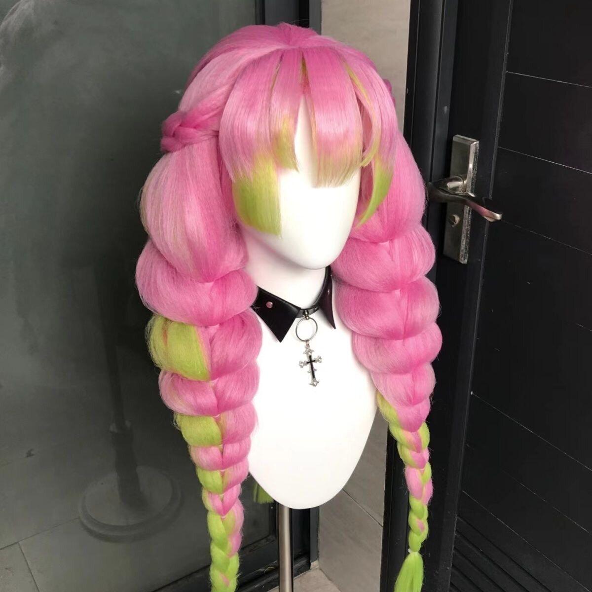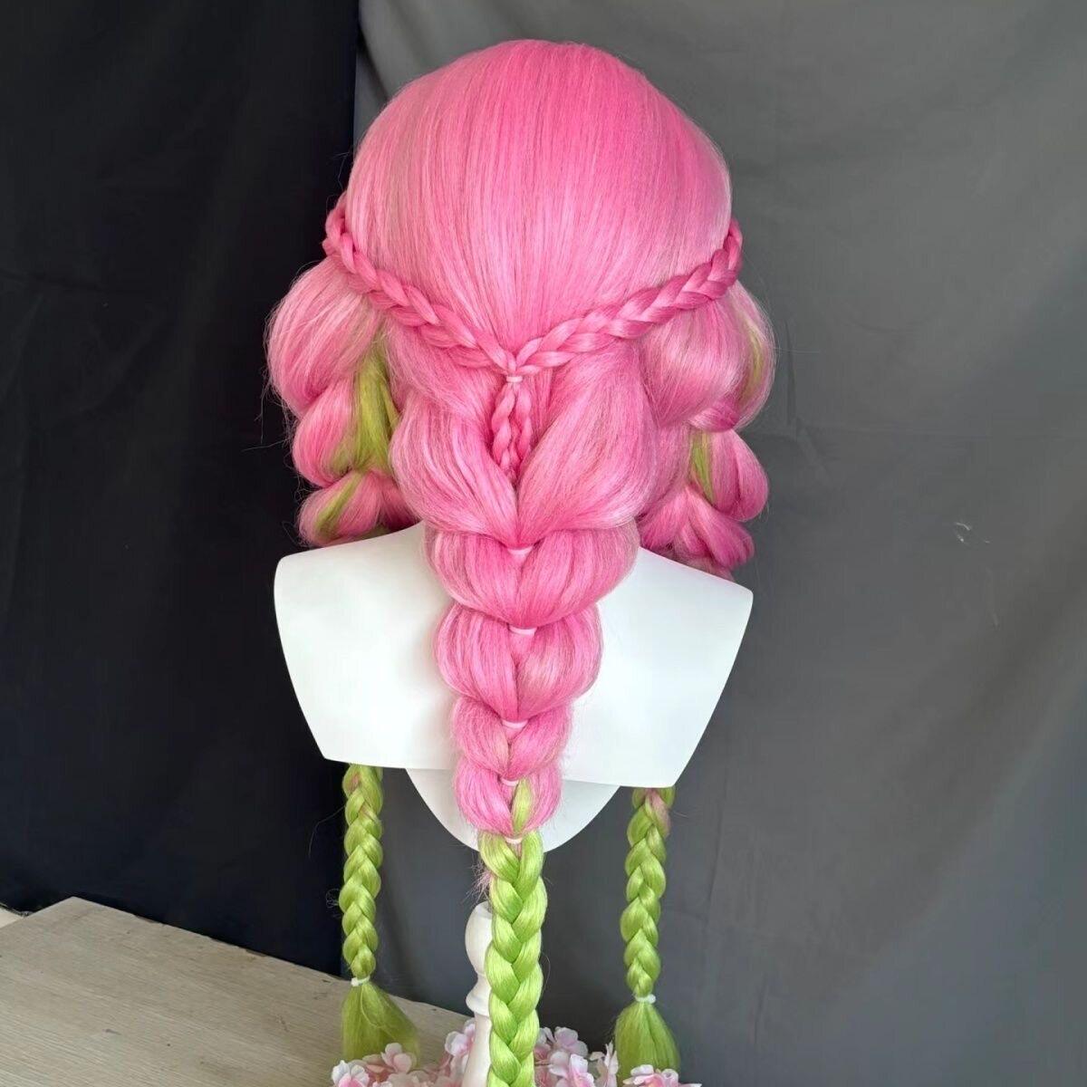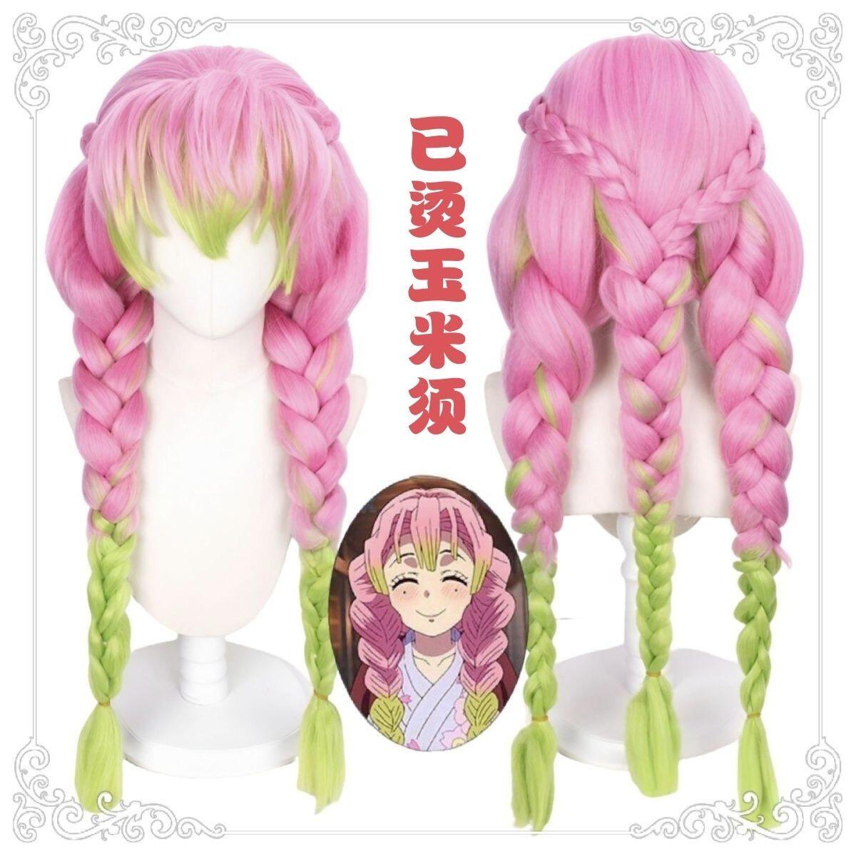 【已烫好】蜜璃cos 甘露寺蜜璃 玉米须玫瑰网 粉绿渐变麻花辫公主