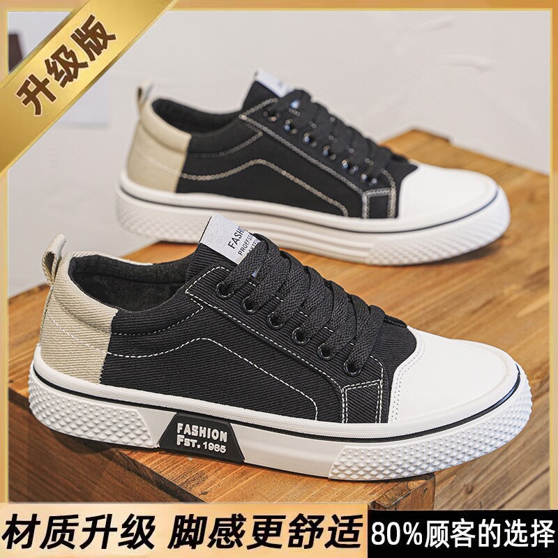 2026帆布鞋男士春夏新款防滑运动板鞋透气青少年休闲百搭男鞋黑色
