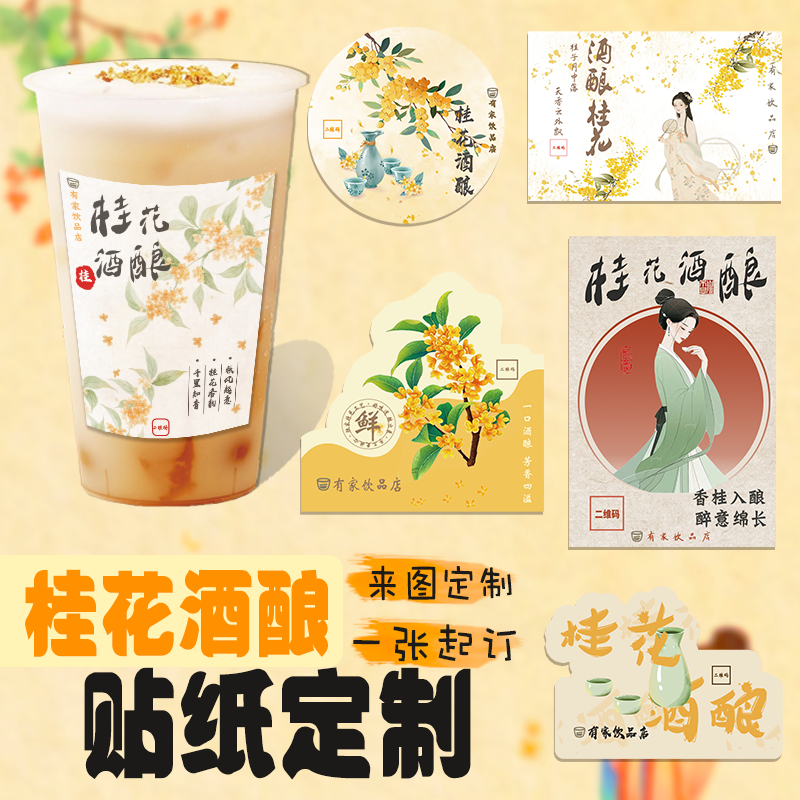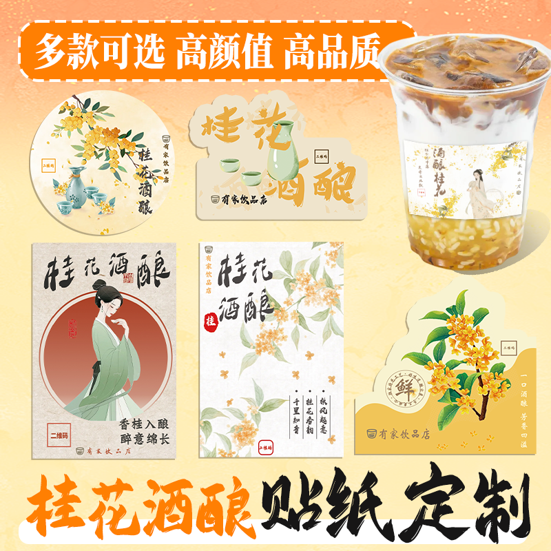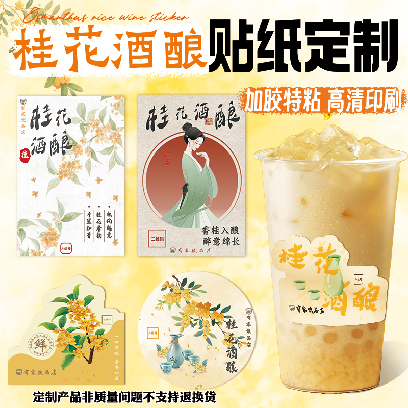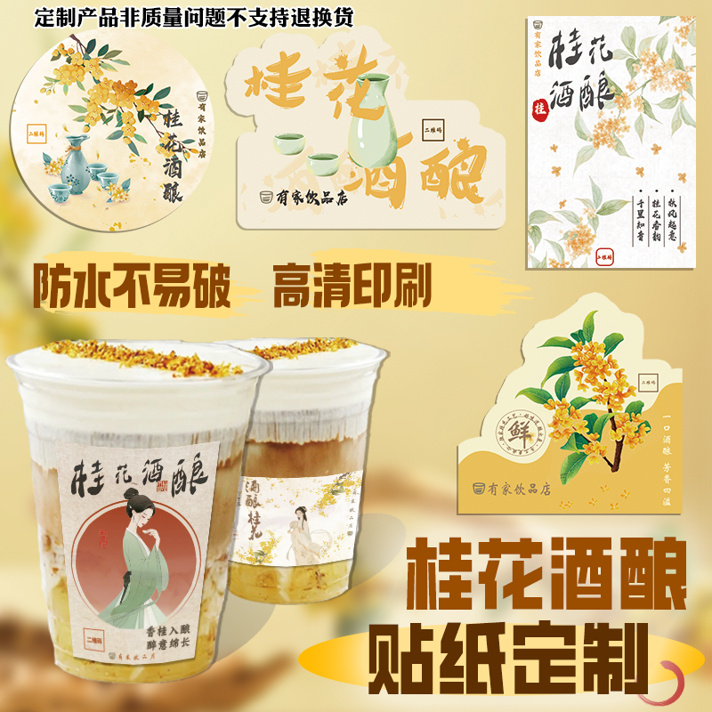 桂花酒酿贴纸定制米酒防水贴纸不干胶标签定制瓶贴果酒青梅酒贴