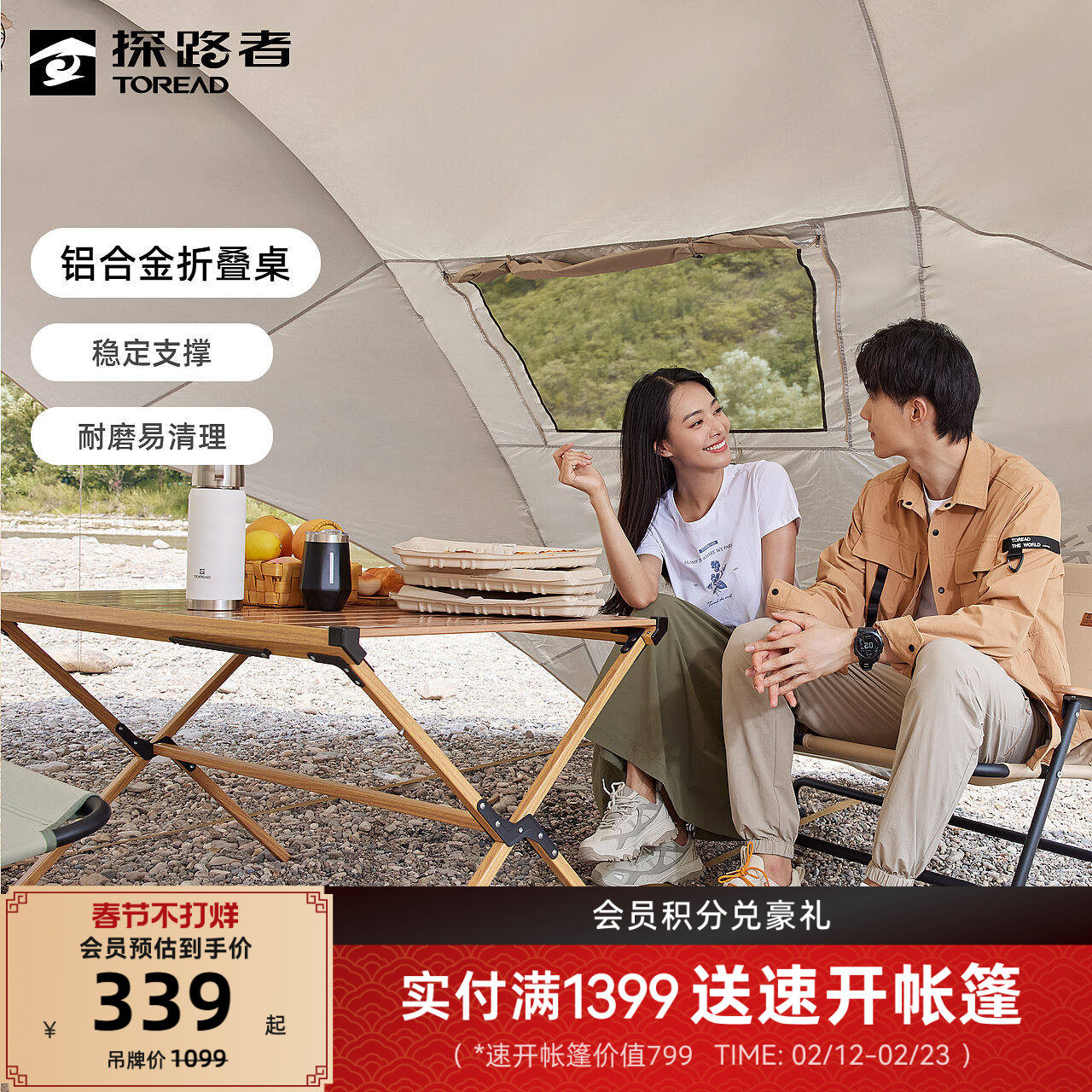 探路者铝合金折叠桌户外露营野餐装备便携式野外旅行桌面轻便耐磨