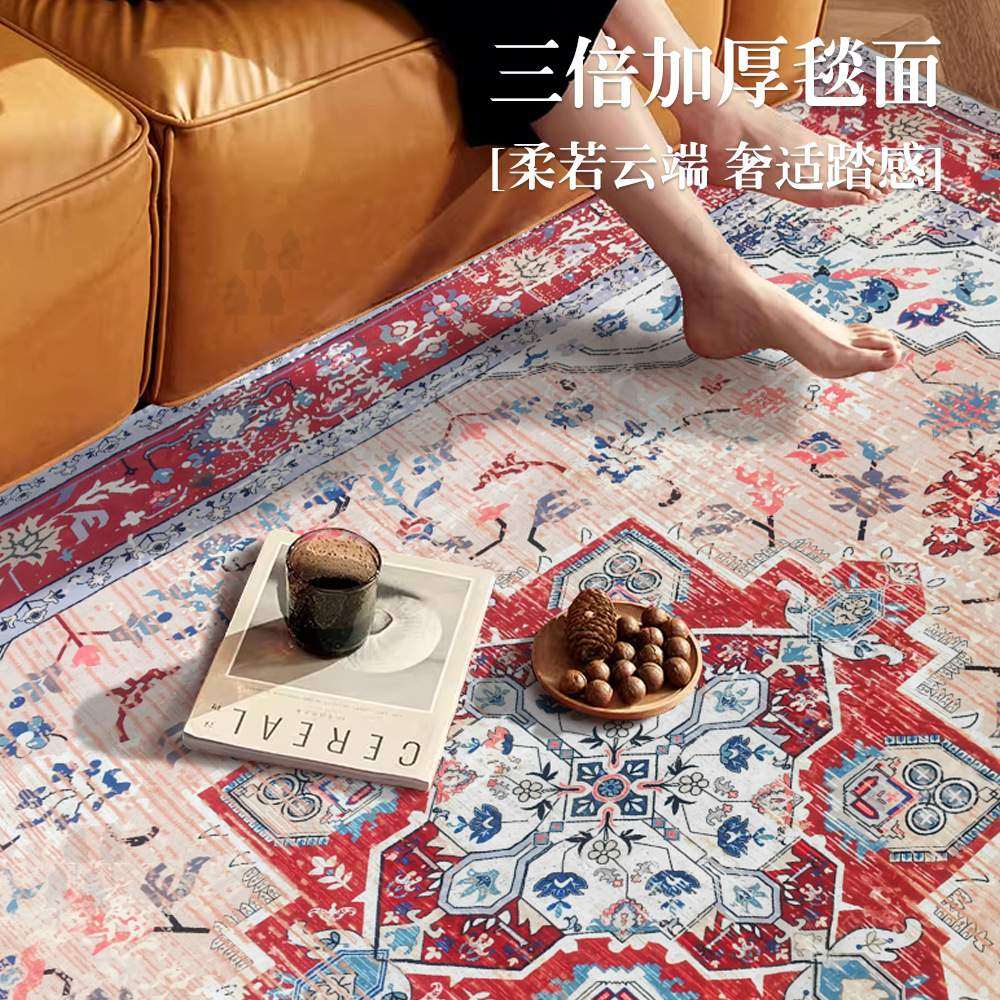 红色欧式印花仿羊绒中古风可机洗卧室沙发茶几客厅大面积地毯地垫