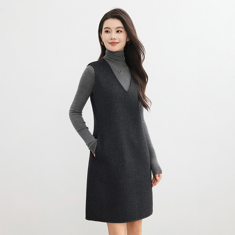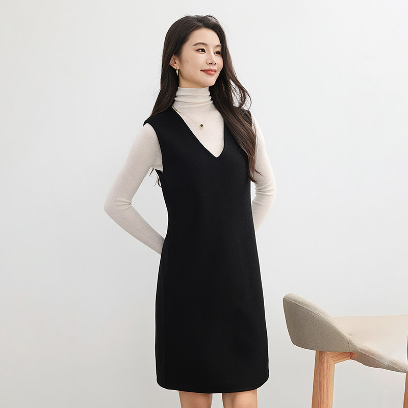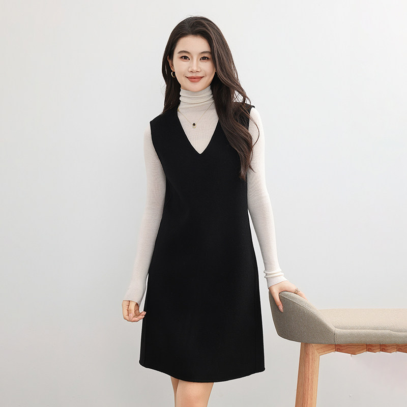 秋冬新款赫本风黑色毛呢马甲女连衣裙双面羊绒大衣女气质减龄百搭