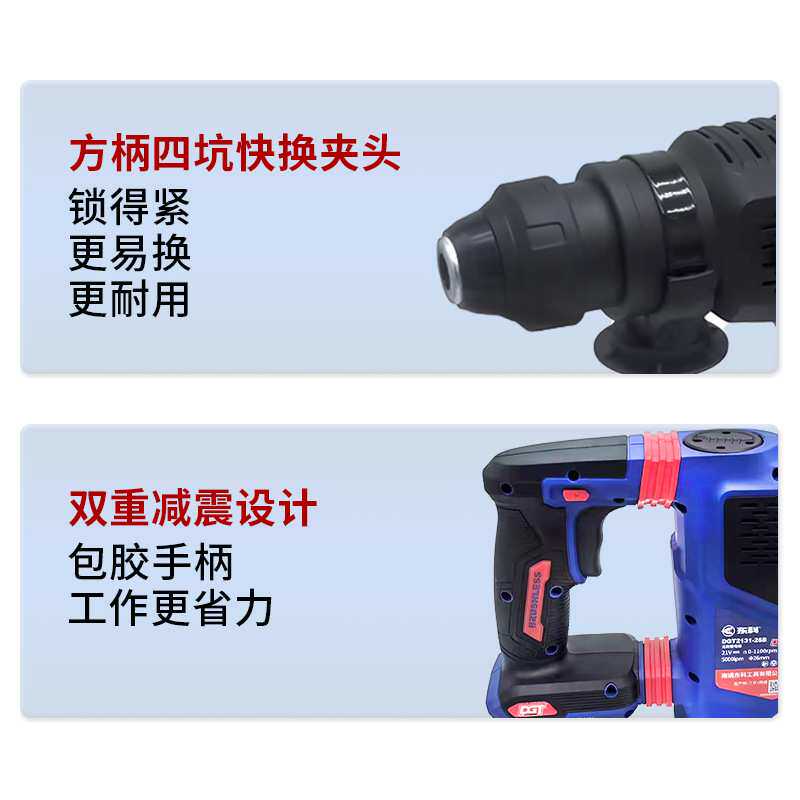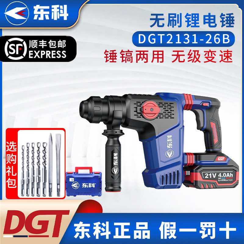 东科无刷锂电锤冲击钻打混凝土打墙孔两用大功率电镐DGT2131-26B
