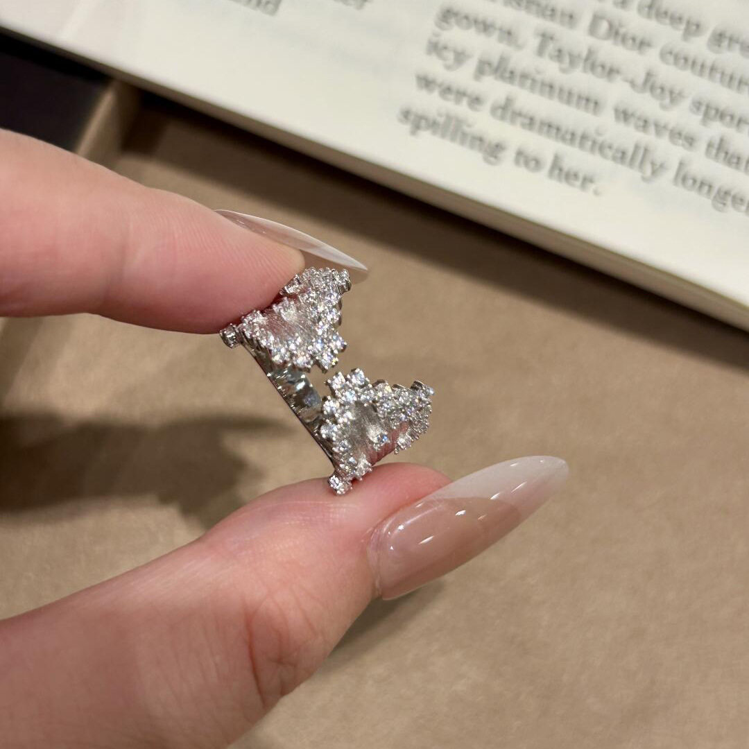 闪耀星辰银色拉丝满天星开口戒指女款时尚轻奢微镶锆石精致手饰