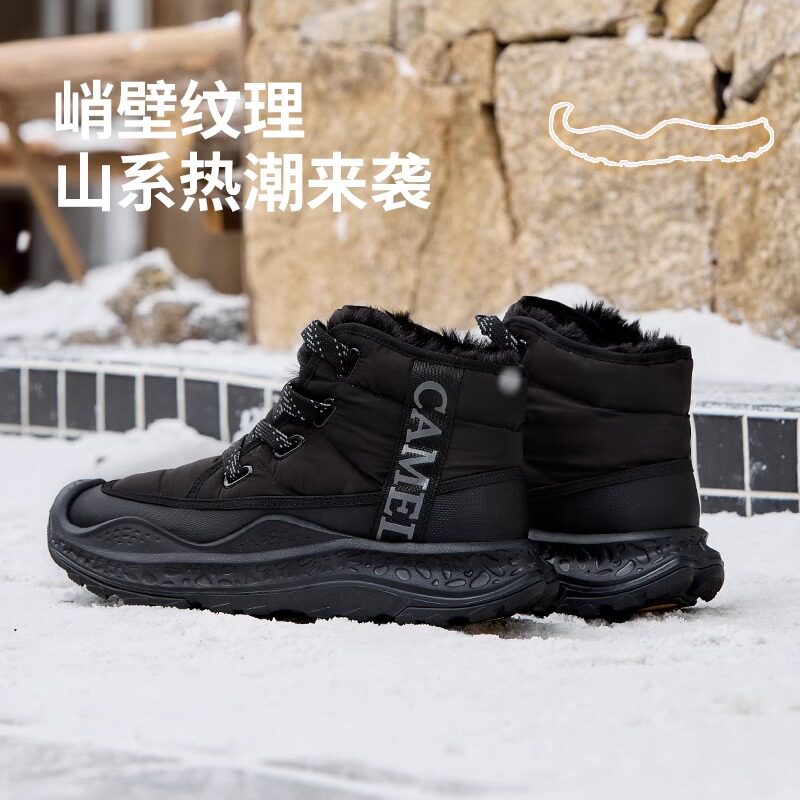 【骆驼踏雪】男鞋2025冬季加绒加厚棉鞋防滑运动高帮雪地靴