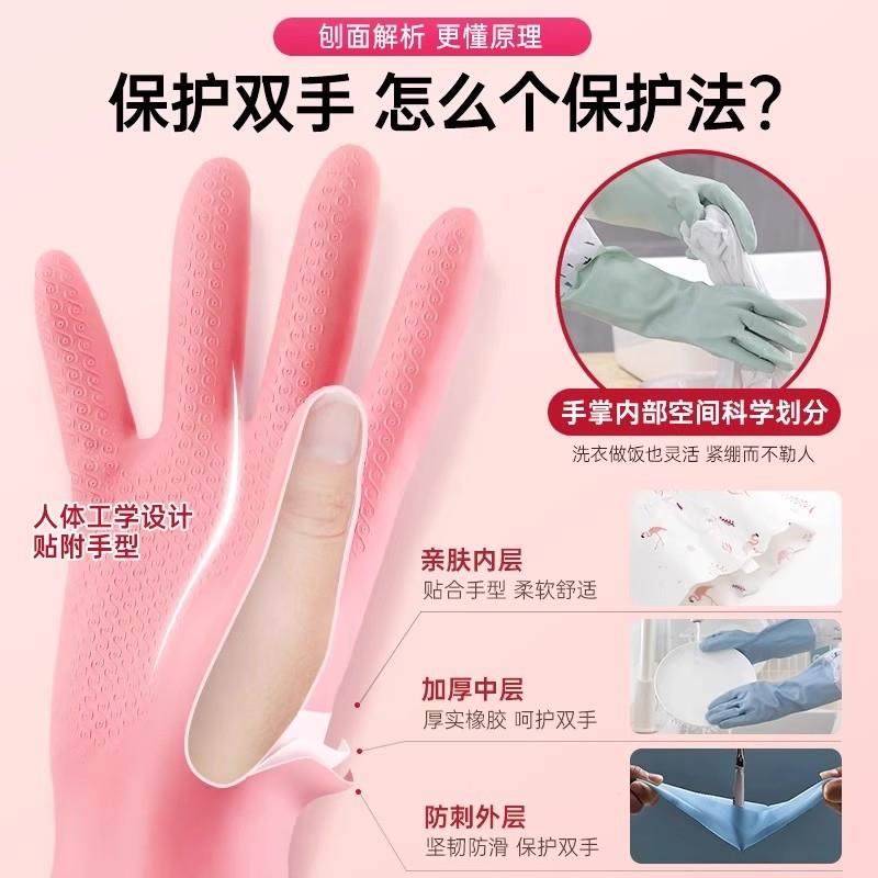 洗碗手套女家用厨房耐用型贴手防水胶皮手套刷碗做家务清洁洗衣服