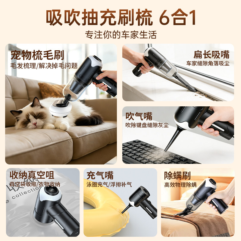 车载吸尘器大吸力无线手持五合一2025新款多功能大功率车用家用