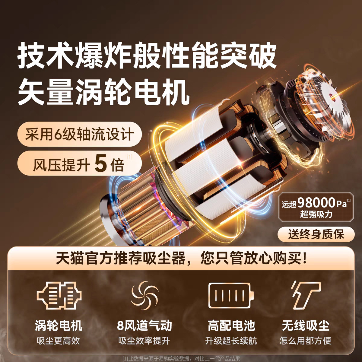 尤利特无刷电机无线车载吸尘器大吸力汽车家用多功能除螨电动毛刷