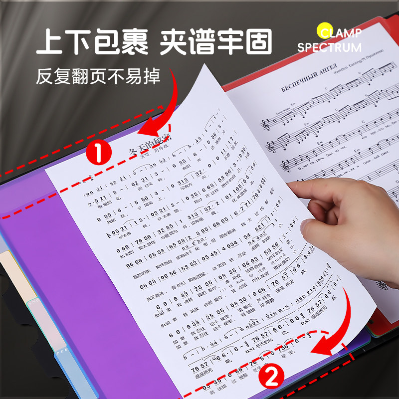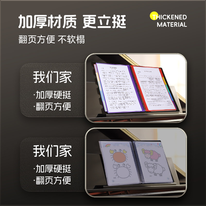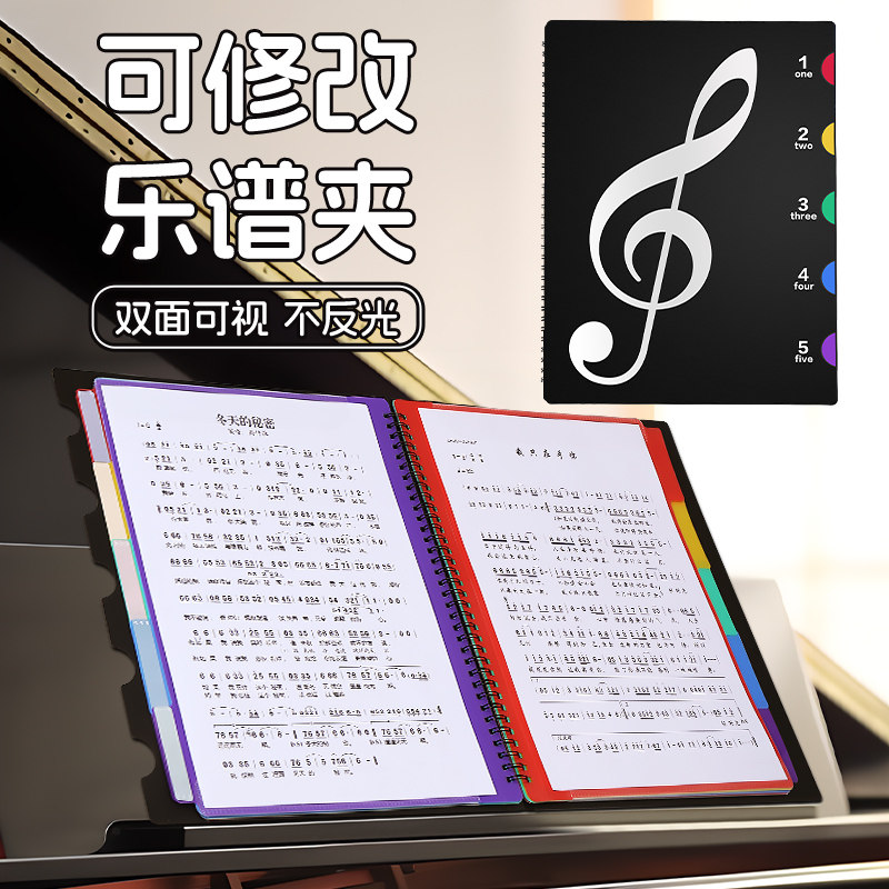 乐谱夹钢琴专用谱夹小学生黑色琴谱夹活页展开式资料册a4文件夹不反光可改谱可修改透明插页音乐合唱团歌谱夹