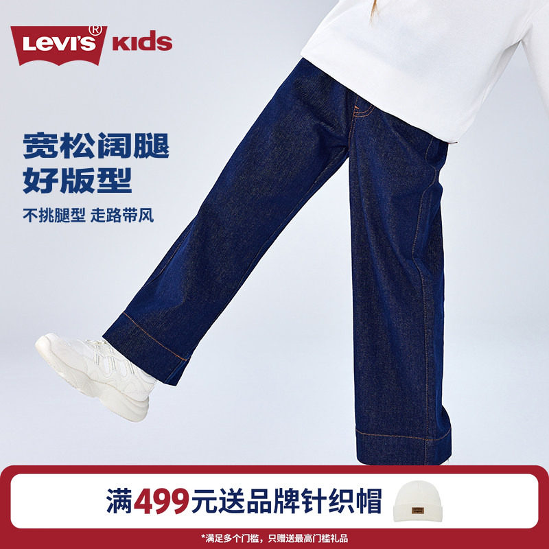 Levis李维斯女生阔腿牛仔裤童装长裤2026春装新款裤子女童儿童
