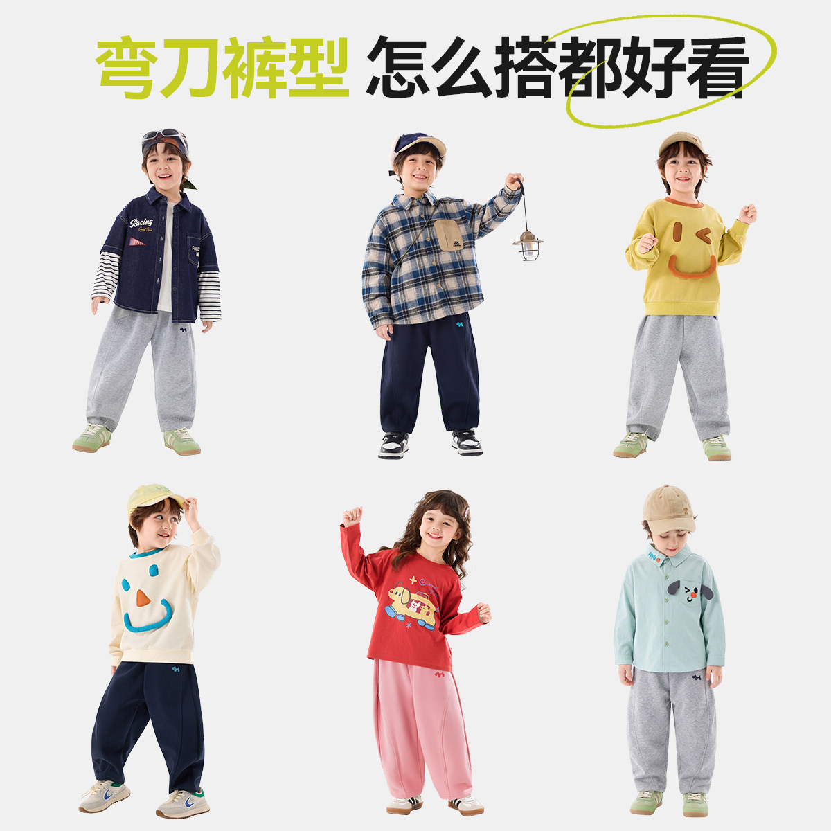 嘟嘟家男童裤子春秋儿童长裤春季宝宝休闲裤春装女童弯刀裤廓形潮