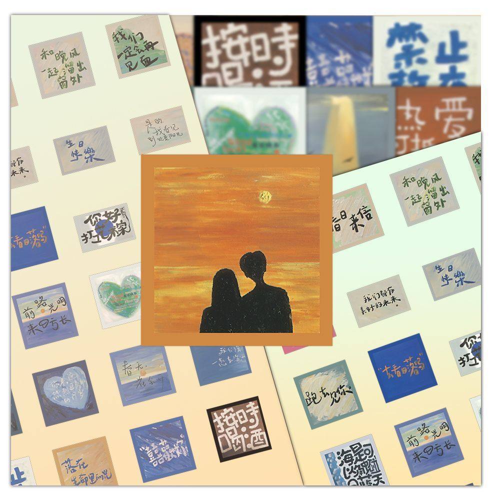 【大图释官方授权】150张清新油画丙烯画文字激励鼓励语录玻璃装饰ins高颜值励志治愈装饰防水不干胶素材贴画