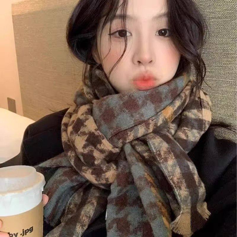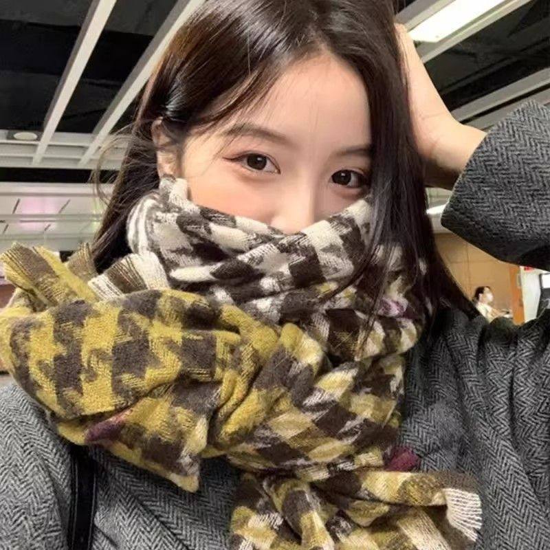 冬季围脖情侣格子披肩保暖千鸟格围巾女2025新款高级感美式灰色