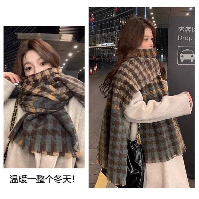 三福格子围巾韩系高级感保暖围脖披肩两用旅游外搭女冬季2025新款
